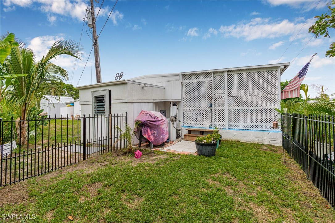 55+ community close to all the action! This lovely home in the heart of beautiful Bonita Springs offers the best of convenient SWFL living and you OWN the land. This well-maintained home has been meticulously cared for. With split bedrooms on opposite sides of the home, with living in the middle, everyone has quiet privacy. This home features a lovely semi-enclosed porch area to enjoy as well as a fenced in area in the back surrounded by tropical plants giving it the feel of an oasis. This community has NO MANDATORY HOA fees, however you can participate in the amenities if you choose to purchase a membership, which is a one-time $1,500 fee and $350/yr to enjoy the clubhouse, pool, fitness center, billiard room, shuffleboard, pickleball and bocce court.