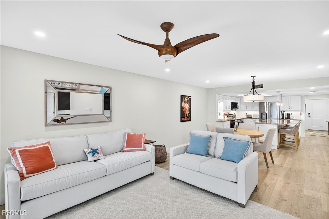 Experience effortless island living in this first floor corner unit at Sanddollar C 103. This beautifully updated three bedroom, two bath condo offers direct Gulf views and a bright coastal design that feels relaxed and inviting from the moment you arrive. The open kitchen features white custom cabinetry, a center island with a breakfast bar, and new stainless steel appliances. Wood looking tile runs throughout the main living areas, and impact retractable sliders lead out to a spacious lanai overlooking the beach. The primary suite enjoys Gulf views, lanai access, soft carpet underfoot, and a well appointed bathroom with dual sinks and a large tile shower. Two guest rooms, including one currently used as a home office or den, share a comfortable bath. A separate laundry room adds everyday convenience. Sanddollar offers amenities that make every day feel like vacation. Enjoy tennis and pickleball, a sparkling pool with a grilling area, and private beach access just steps from your door. This furnished condo is move in ready and designed to capture the best of Sanibel’s coastal lifestyle. It is also well suited as a second home or rental property, with a minimum rental period of one week from June through August and two weeks from September through May.