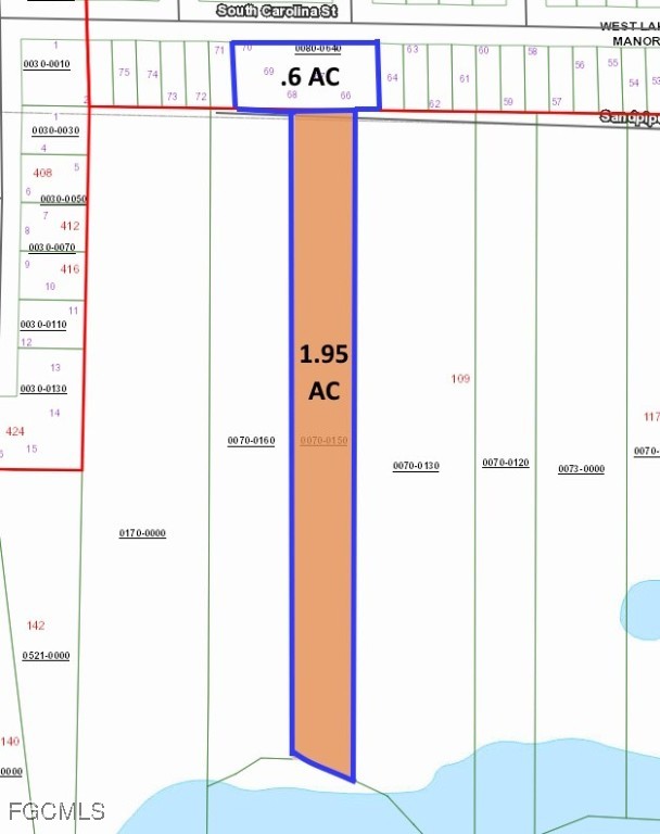 The Sandpiper lot is 1.95 it is on the lake, and the South Carolina lot is a .6-acre lot. South Carolina is a county-maintained road - Sandpiper Road is not.