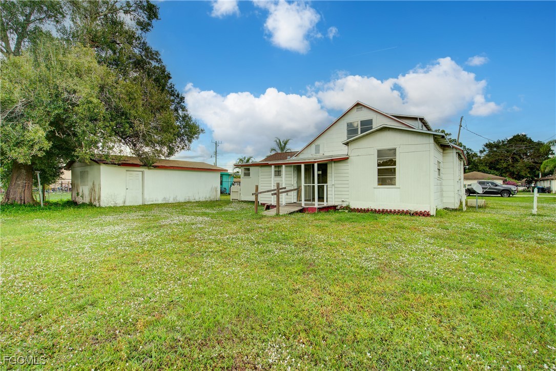 This older home sits on an oversized lot rarely found in this neighborhood, offering excellent potential for a full remodel or reconfiguration. The property features an old-fashioned front porch, original wood floors, multiple outdoor sitting areas—including a spacious back lanai—and a large detached 2-car shed/garage.
