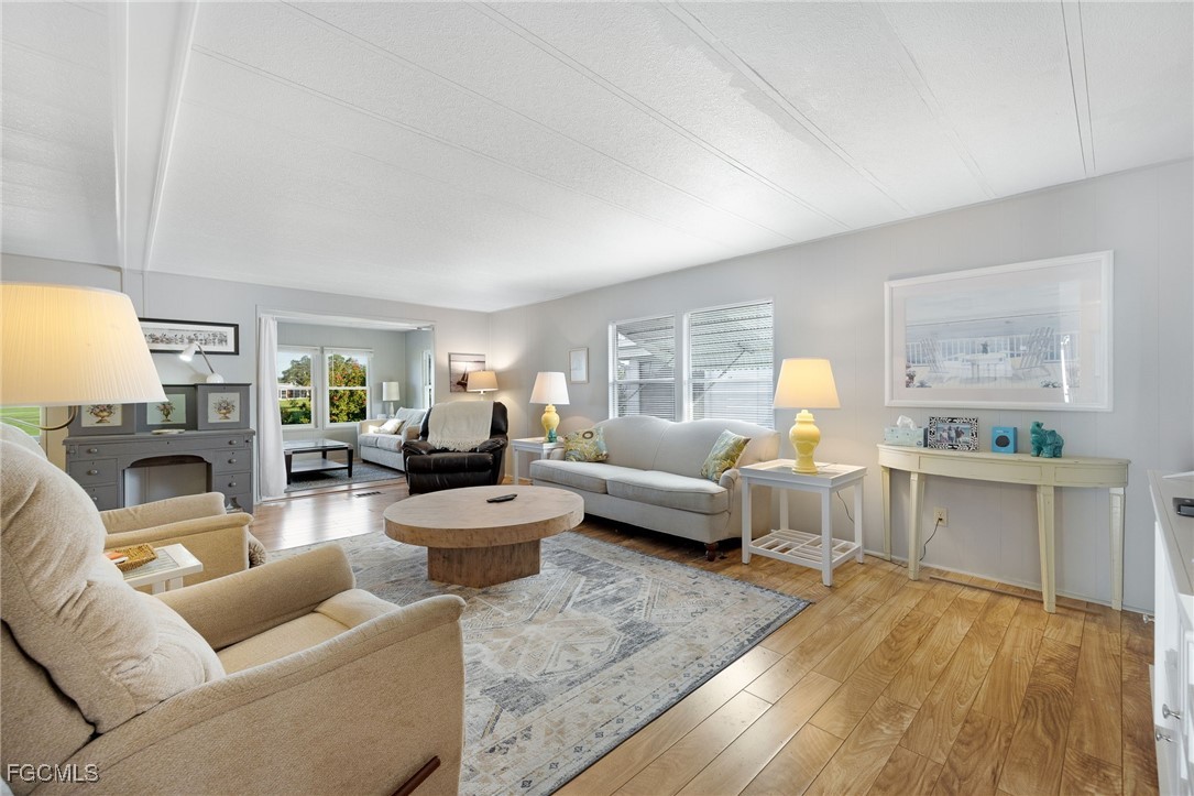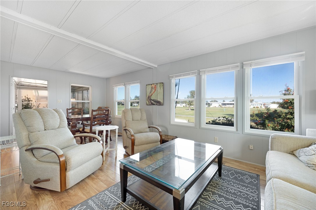 Welcome to your dream home in the prestigious Six Lakes Country Club! This stunning manufactured home boasts 2 bedrooms, 2 bathrooms, and a den, providing ample space for you and your loved ones. The new roof installed in 2023 ensures peace of mind for years to come. Situated on the golf course, you can enjoy breathtaking views right from your backyard. The home comes fully furnished and turnkey, so you can move in and start enjoying the luxurious lifestyle right away. The air-conditioned Florida room is the perfect spot to relax and unwind after a day on the course. And the included golf cart makes getting around the community a breeze. This home is truly move-in ready, offering convenience and comfort in one package. Don't miss out on this incredible opportunity to own a piece of paradise in Six Lakes Country Club where Golfing is not mandatory but enjoying your retirement is!