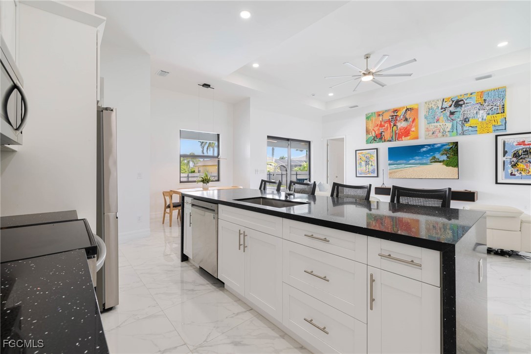 Set in one of NW Cape Coral’s most attractive areas, surrounded by high end gulf access properties, this home offers abundant recreation close by. The Burnt Store boat ramp is just 2 miles away, making it ideal for boating enthusiasts. Tropicana Park (1 mile) is under construction and will feature a kayak launch, beach area, fitness stations, and picnic facilities. Joe Stonis Park (3 miles) provides walking trails and courts for tennis, pickleball, shuffleboard, and more. Sirenia Vista Park (2.7 miles) is a popular spot for manatee viewing and kayak access, while Jim Jeffers Park (3.3 miles) adds soccer & basketball fields, playgrounds, and lakeside picnic facilities. Everyday conveniences such as Publix, banks, and restaurants are within 3 miles, while schools and the public library are less than 4 miles away. Larger developments like The Grove and Seven Islands are on the horizon, promising even more amenities nearby. Punta Gorda Airport is 20 miles for added travel convenience.