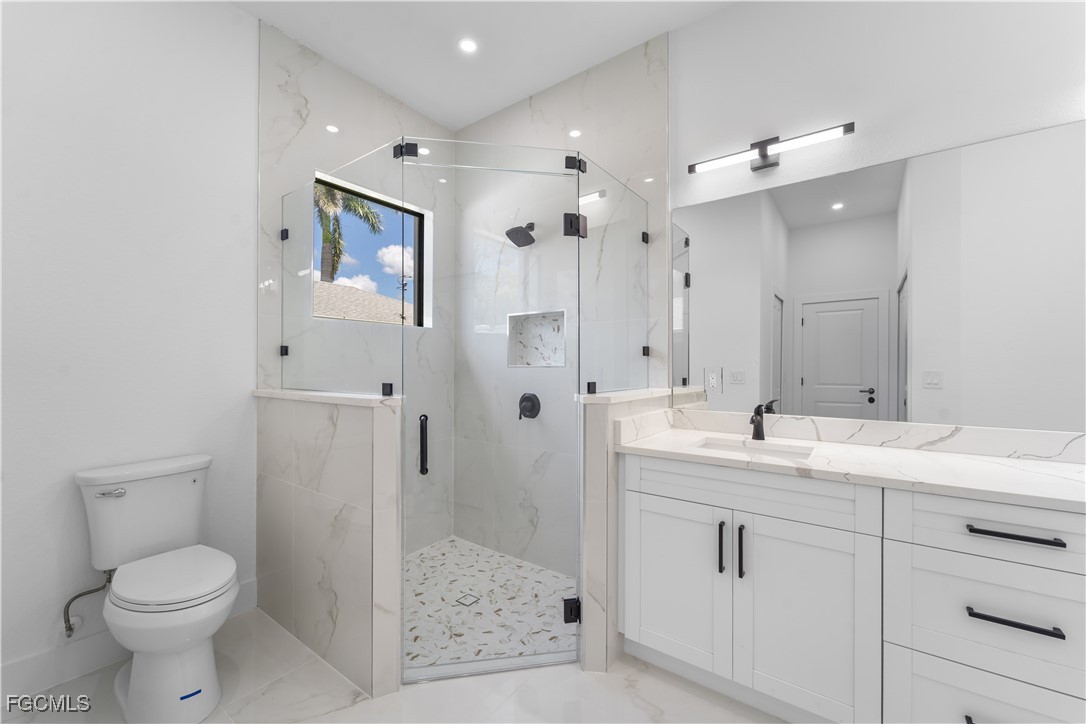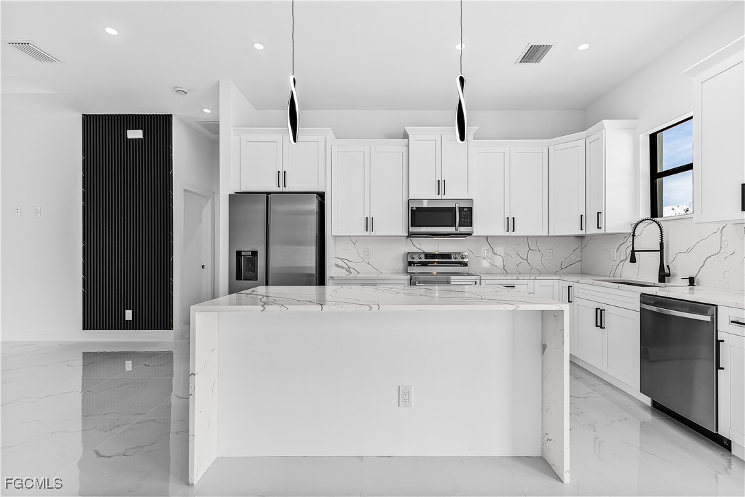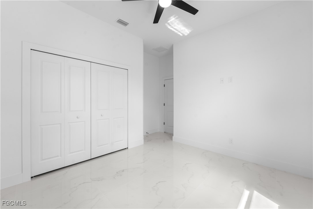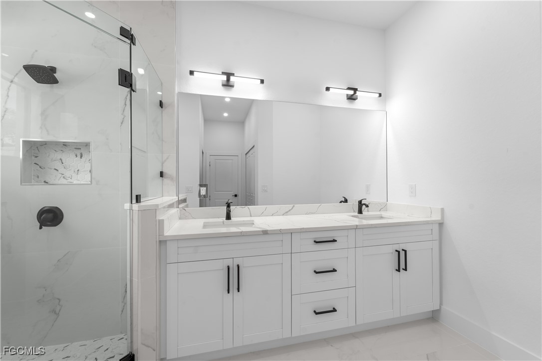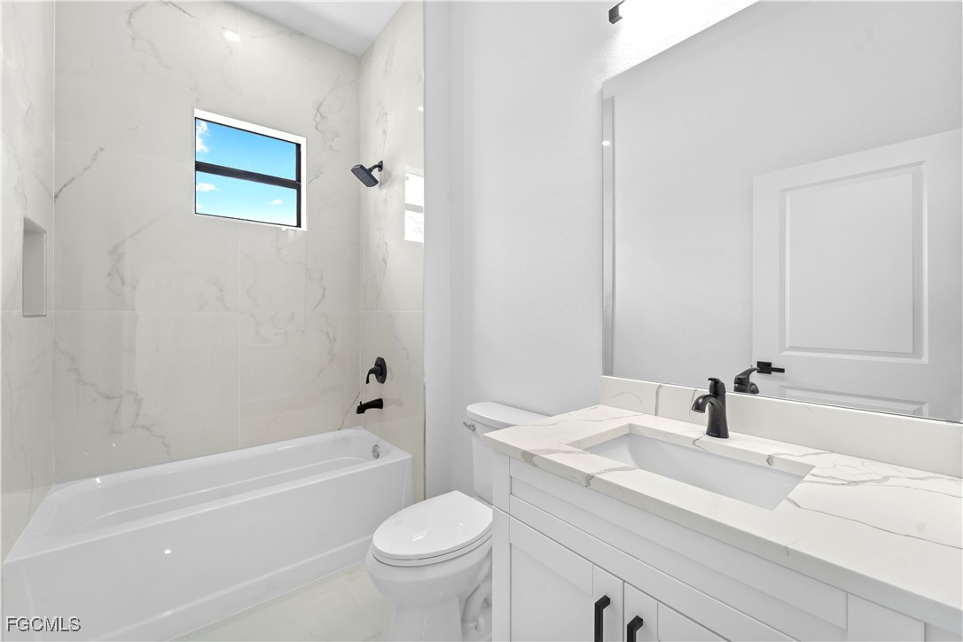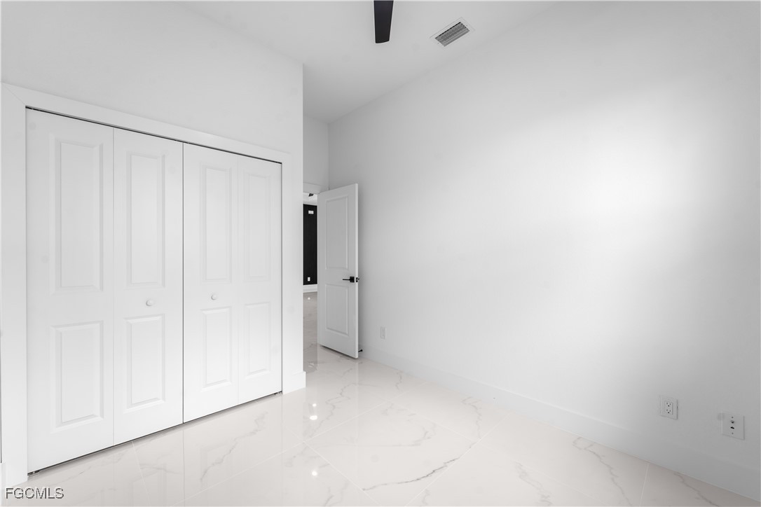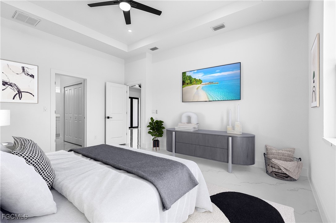 Welcome to 3034 NW 16th Place! Step into a home that balances bold design with everyday function in Cape Coral’s rapidly growing Northwest corridor, offering 4 bedrooms, 2 bathrooms, and a sparkling pool on a fully landscaped homesite. From the exterior you’ll notice clean architectural lines accented by pavered drive and lanai, fresh sod, 360-degree gutters, a full irrigation system, and custom LED lighting that makes the home glow after sunset, while the fenced backyard adds privacy and security. Inside, the layout is open yet defined, with ceilings climbing from 10 feet in the bedrooms to 12 and 13 feet in the living room, creating an airy volume rarely found in this price point. Impact windows and doors, R30 insulation, and epoxy-coated garage floors speak to durability and efficiency, while thoughtful finishes give the home a polished edge. The kitchen showcases quartz counters with a striking waterfall edge, stainless steel appliances, backsplash accents, soft-close cabinetry, custom closet-style storage, and a walk-in pantry that anchors the space, while the adjacent living room features a custom accent wall that elevates the feel from simple to standout. The primary suite delivers a private retreat with dual walk-in closets designed for organization, a glass-enclosed shower and dual vanity, while the remaining bedrooms are well-scaled, each with ceiling fans and natural light. Tile floors throughout make for seamless flow and easy upkeep. Outdoor living is effortless here: the pool and lanai invite year-round enjoyment, framed by pavers and designed for both gatherings and quiet relaxation. Every detail has been considered, from custom LED lighting inside and out, to closet shelving and storage systems, to the irrigation that keeps the landscape fresh and vibrant. Located near boat ramps, Pine Island Road, shopping, dining, and just a short drive to airports and Gulf access, this home offers both immediate comfort and future value in one of Cape Coral’s most active growth areas. 3034 NW 16th Place is not just another new build—it’s a property that combines practical upgrades with modern style, ready for its first chapter. Schedule your showing today.