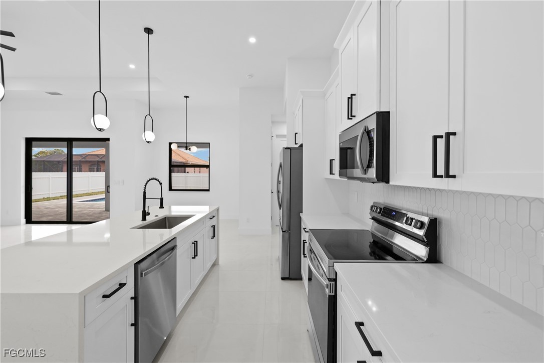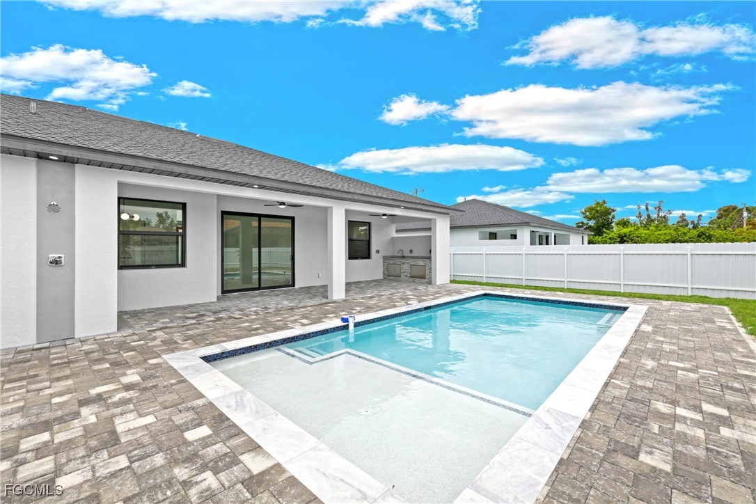 This stunning luxurious BRAND NEW POOL home is like no other home in the area. This builder has put a touch of his own brand into this beauty. A few of the key features that sets this home apart are the porcelain tile flooring that has been installed throughout the entire home, custom built kitchen cabinets, countertops, high end electrical/plumbing fixtures and much more. The attention to detail is evident, nothing was left behind. The master suite offers great privacy and comfort with a very spacious bedroom, bathroom and walk-in closets. The kitchen follows the same steps as it is perfect for entertaining guests. Its modern design makes this home feel exceptional. The private backyard is ideal for gatherings. With enough green space to play and also an amazing back open porch to relax that features a fully functional exterior kitchen. The home features a double car garage, so parking and storage won't be a problem. The amount of comfort and options offered by this beautiful home are endless. Don't wait and schedule a showing today , this is a great opportunity for investment or for enjoy.
