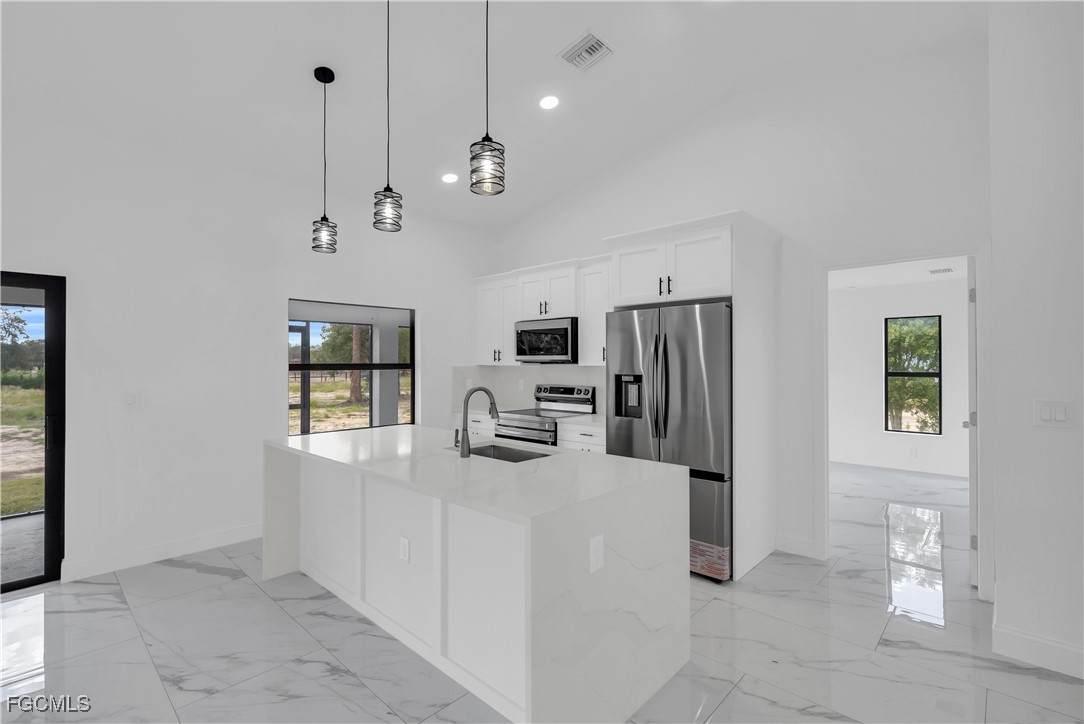 Imagine the freedom of wide-open space: whether you’re a long-haul truck driver in need of extra parking, an animal lover with room for horses and barnyard friends, or someone dreaming of building a workshop, this property gives you the land and lifestyle you’ve been searching for. Step inside and you’ll find a thoughtfully designed open-concept floor plan offering 3 bedrooms, 3 full bathrooms, plus a versatile den—perfect for a home office, guest space, or playroom. The private master suite feels like a true retreat, complete with a modern ensuite bath where you can relax and recharge. The kitchen is a chef’s dream with granite countertops, stainless steel appliances, ample cabinetry, and a spacious layout that flows seamlessly into the living and dining areas—ideal for both comfort and entertaining. Sleek tile flooring runs throughout, combining practicality with timeless style. Outside, the expansive lot is your blank canvas: garden, ride, build, or simply enjoy the peace and privacy of your own slice of Southwest Florida. Properties like this are rare, blending modern comfort with the land and freedom to create the lifestyle you’ve always wanted. Completed photos are from a previously sold model. Please do not visit the property without a scheduled appointment.