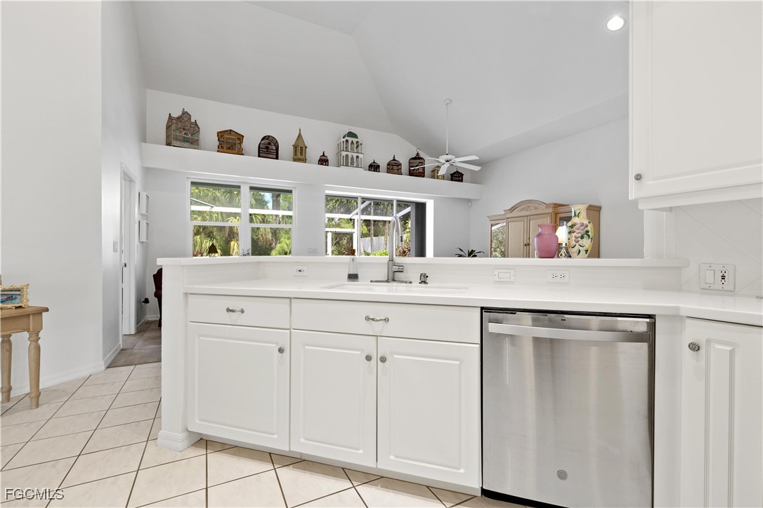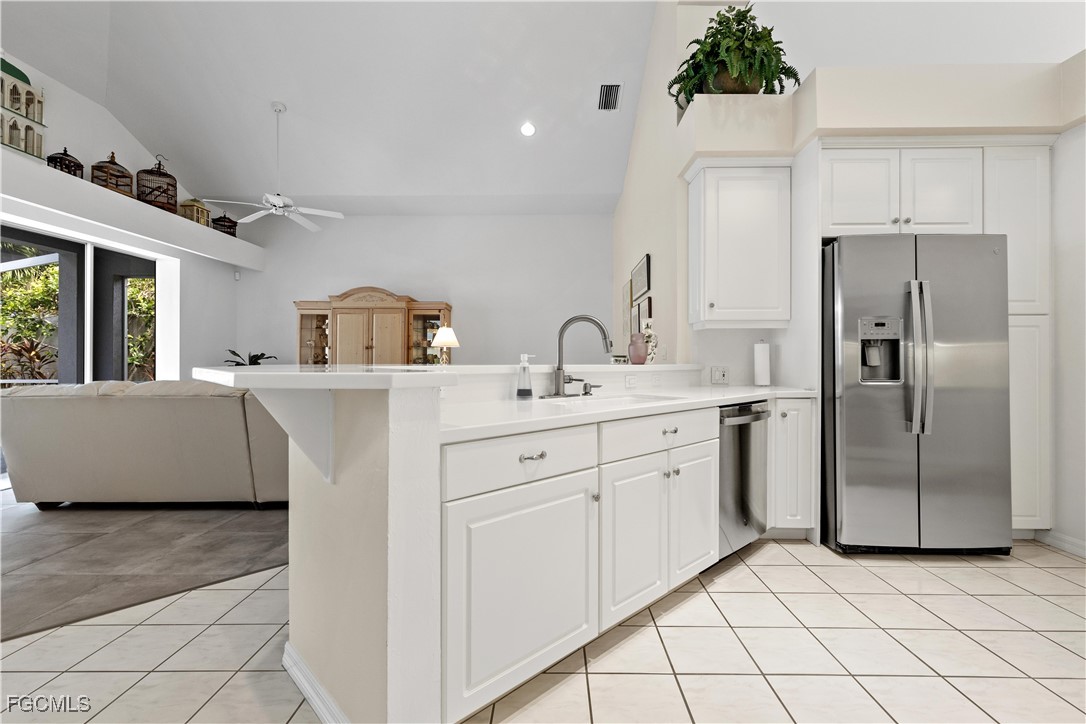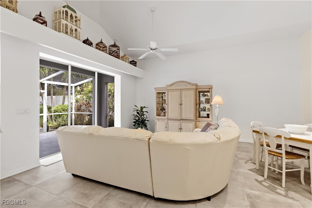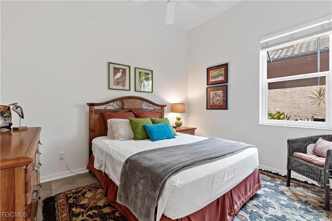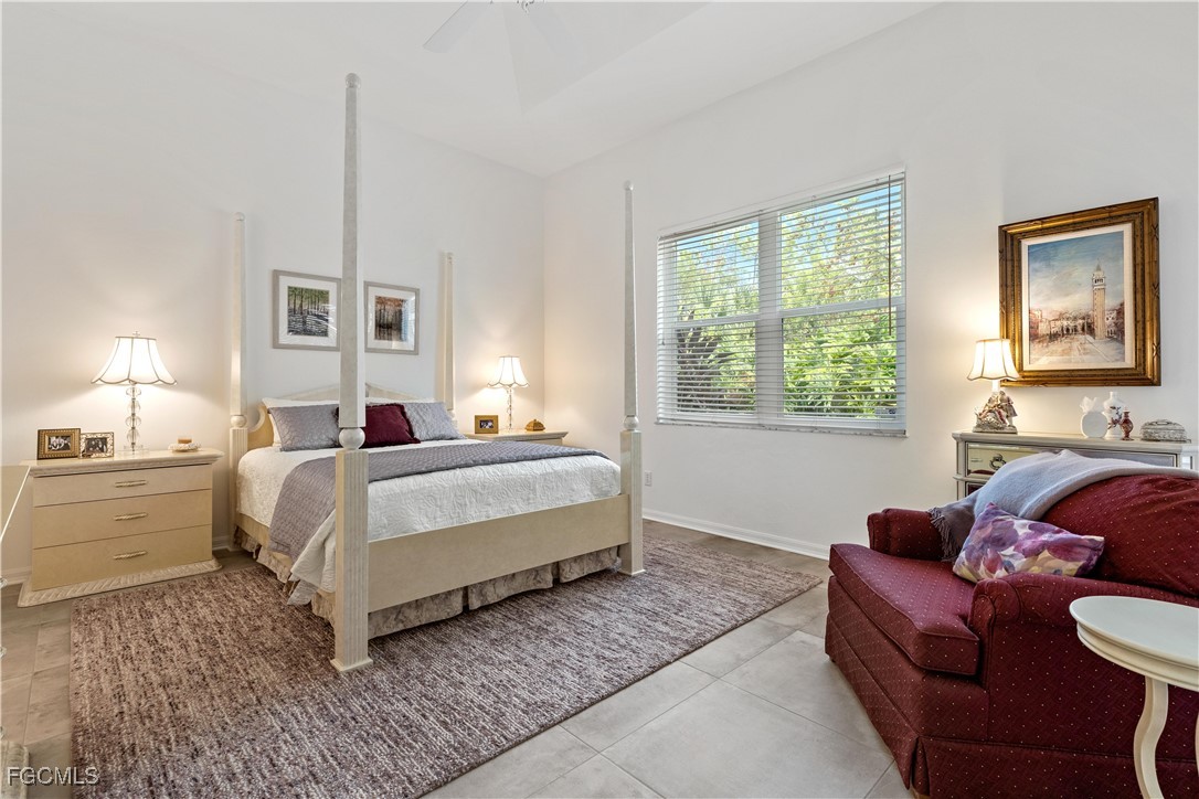 This remarkable residence offers three bedrooms and two bathrooms, complemented by a side-load two-car garage and soaring cathedral ceilings that enhance the sense of space. The property features a ***New tile ROOF installed in 2023, ***IMPACT-resistant windows, a newer air conditioning unit, and updated appliances, all constructed with insulated concrete forms for exceptional energy efficiency, resulting in an average electric bill of only $76. The heart of the home is the oversized kitchen. Cook, host, and gather with ease in a kitchen that truly delivers, endless cabinets , ample counter space and a large walk in pantry. There is more than enough storage in this kitchen. Expansive pocket sliders lead to an extended screened lanai and paver patio, providing a picturesque view of the private, gorgeously landscaped outdoor area, ideal for both entertaining and relaxation. The primary bedroom includes sliders to the lanai, an en suite bathroom with dual sinks, a soaking tub, a separate shower, and a walk-in closet. The spacious layout features two living areas, with the front room currently utilized as a large formal dining space, offering versatile options for use. Casa Del Lago amenities include gated access, a clubhouse, playground, tennis courts, pickle ball, basketball hoops, a community pool and spa, cable, internet, lawn care, irrigation, and an exercise room. Low HOA fees and no flood insurance required. Conveniently located on Six Mile Cypress, residents can enjoy nearby walking paths and a nature preserve with trails, as well as proximity to Whole Foods, The Twins Stadium, Cooper's Hawk restaurant, and a variety of shopping and dining options, with easy access to I-75, the airport, and beautiful beaches.