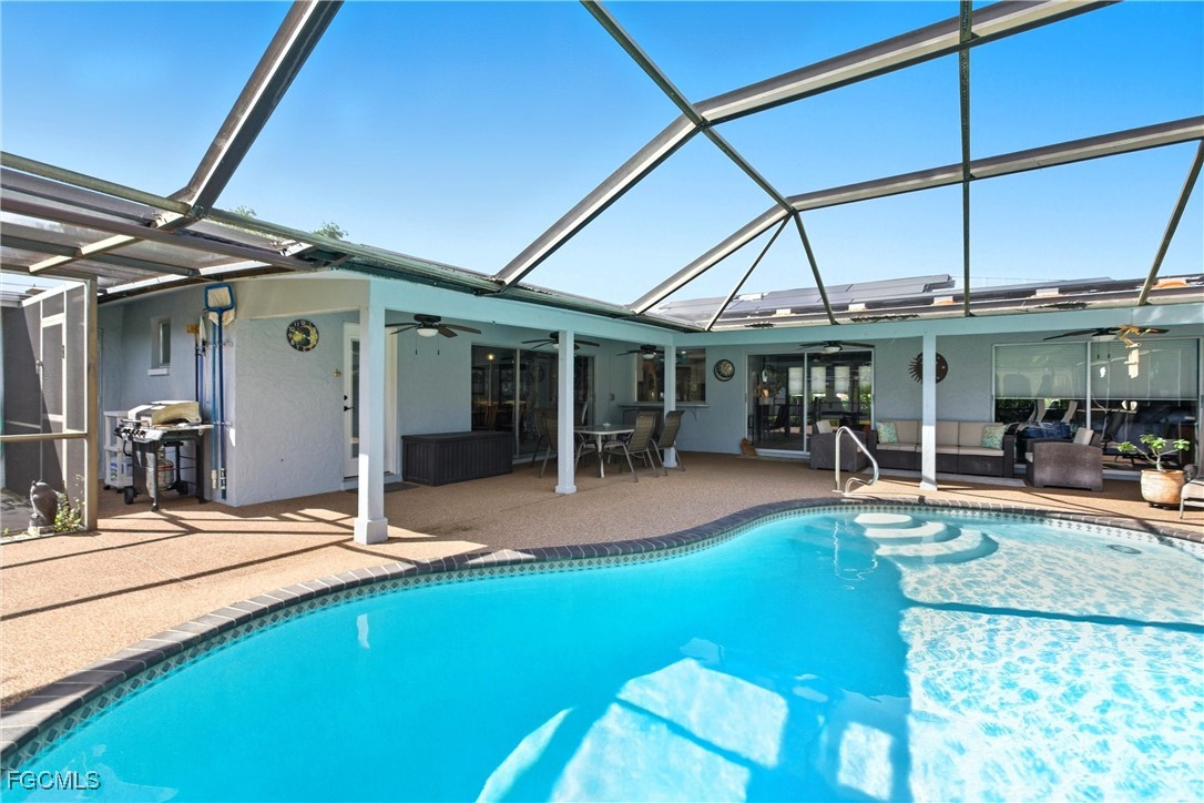Recent upgrades ensure peace of mind, including a metal roof (2023), new electrical panel, complete re-plumbing, buried power lines, and a 2023 hot water heater. The $50,000 paid-off solar panel system keeps electric bills around $25/month, offering unbeatable energy efficiency. This stylish retreat captures the essence of Southwest Florida living—just minutes from Downtown Cape Coral, known for its lively festivals, waterfront dining, and vibrant nightlife. The highly anticipated Yacht Club Community Park and Recreation Center is under redevelopment nearby, promising state-of-the-art amenities, a marina, and a refreshed public beach—all just a short golf cart ride away. This home blends beauty, functionality, and prime location—making it a rare gem in one of Cape Coral’s most desirable communities.