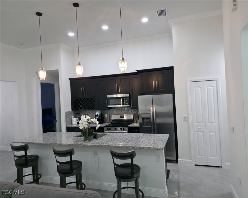 Welcome to your oversized custom built 3 Bedroom 2 bath + Office room contemporary home ready for your active family lifestyle. Enjoy your large granite island countertops and window sils making your home looking always fresh and new for years to come! This one of a kind new construction built home includes thoughtful dedicated places of enjoyment such as full dining room ready to seat as many family and friends can fit. Your modern home welcomes you with up to 16ft high ceilings with wide open rooms. Relax and enjoy your oversized patio including 2 entry ways with 2 large fans ready to entertain. Your large backyard is ready to have fun in the sun with the little ones and even ready for your future pool! Backyard features a variety of fruit trees ready to enjoy with the family. Front door and WINDOWS ARE HURRICANE IMPACT ready for your peace of mind. This home is located within a few blocks of LEE BLVD conveniently located towards Sunshine Blvd. or downtown Lehigh Acres near Walmart. QUIET NEIBORHOOD ON A DEAD-END ROAD perfect for family to enjoy the outdoors anytime! Close to local elementary, middle and high schools within less than a 10 min drive! Your home has everything to keep your growing family entertained. Come see your next home today! Send your offer and get your family ready to enjoy their beautiful home for years to come!