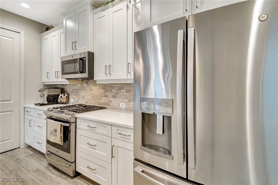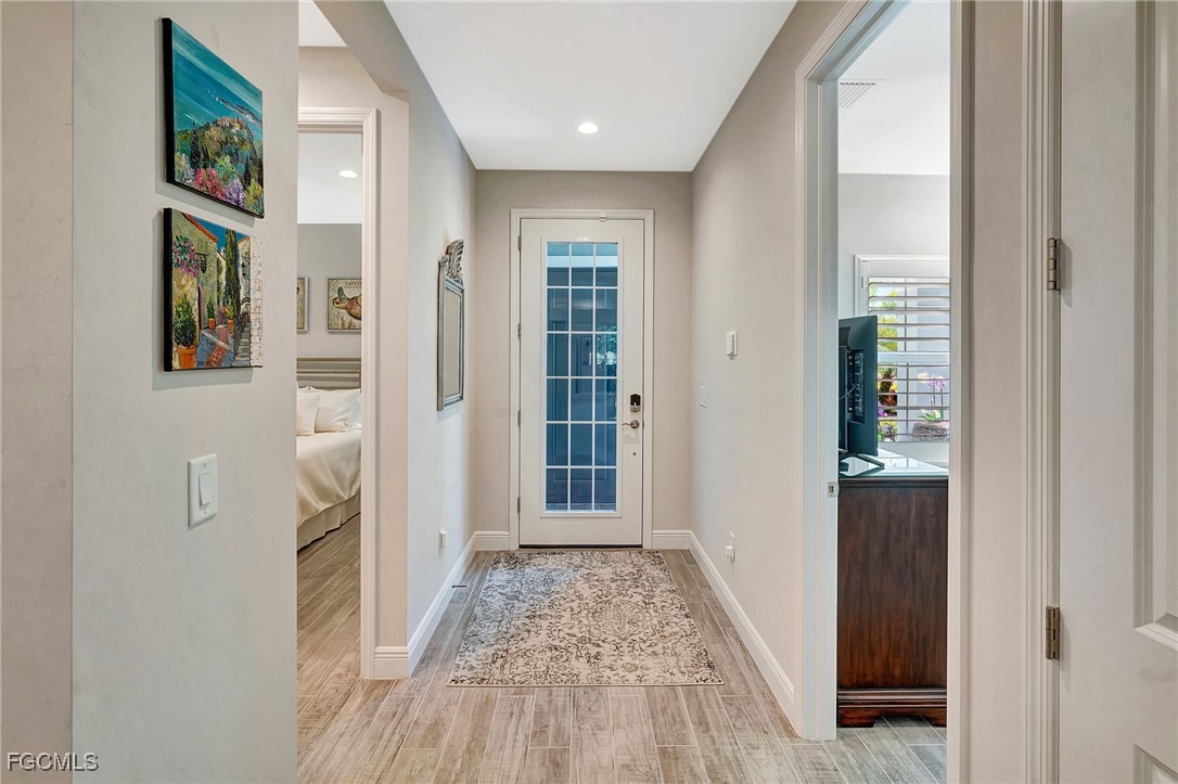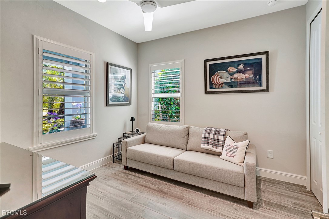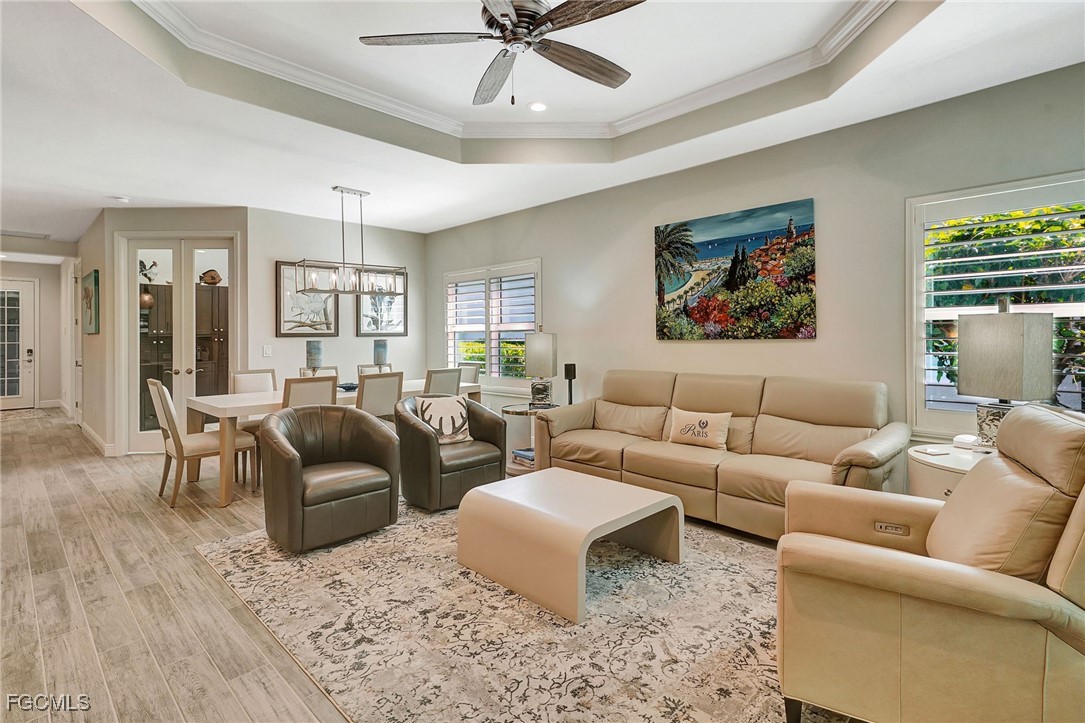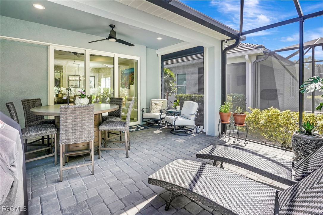 This beautifully maintained three-bedroom plus den, two-bath villa offers approximately 1,840 square feet under air and a total area of approximately 2,775 square feet, blending comfort, quality and peace of mind. Designed with efficiency and safety in mind, the home features a 22KW Generac natural gas whole-house generator, CAT 5 impact-rated windows and doors, Kevlar Storm Smart lanai screens, Ring doorbell security system with cameras and a whole-house surge protector in the electrical panel.