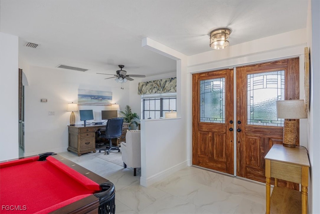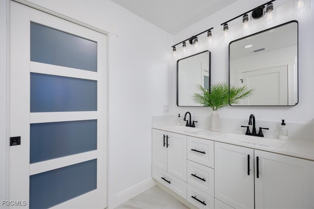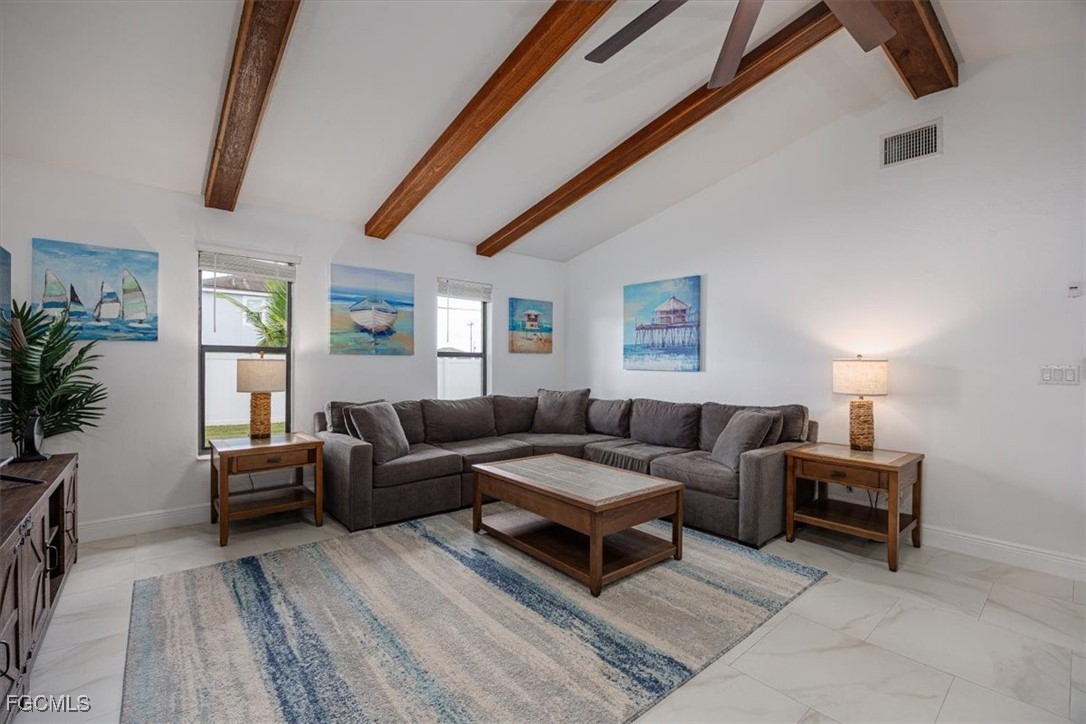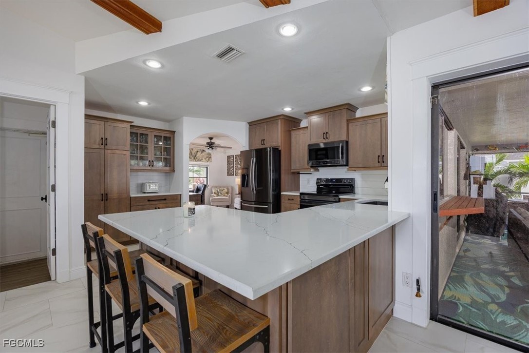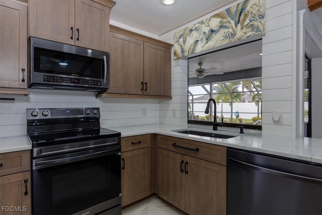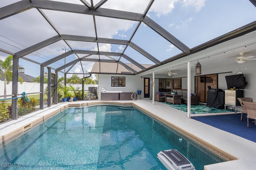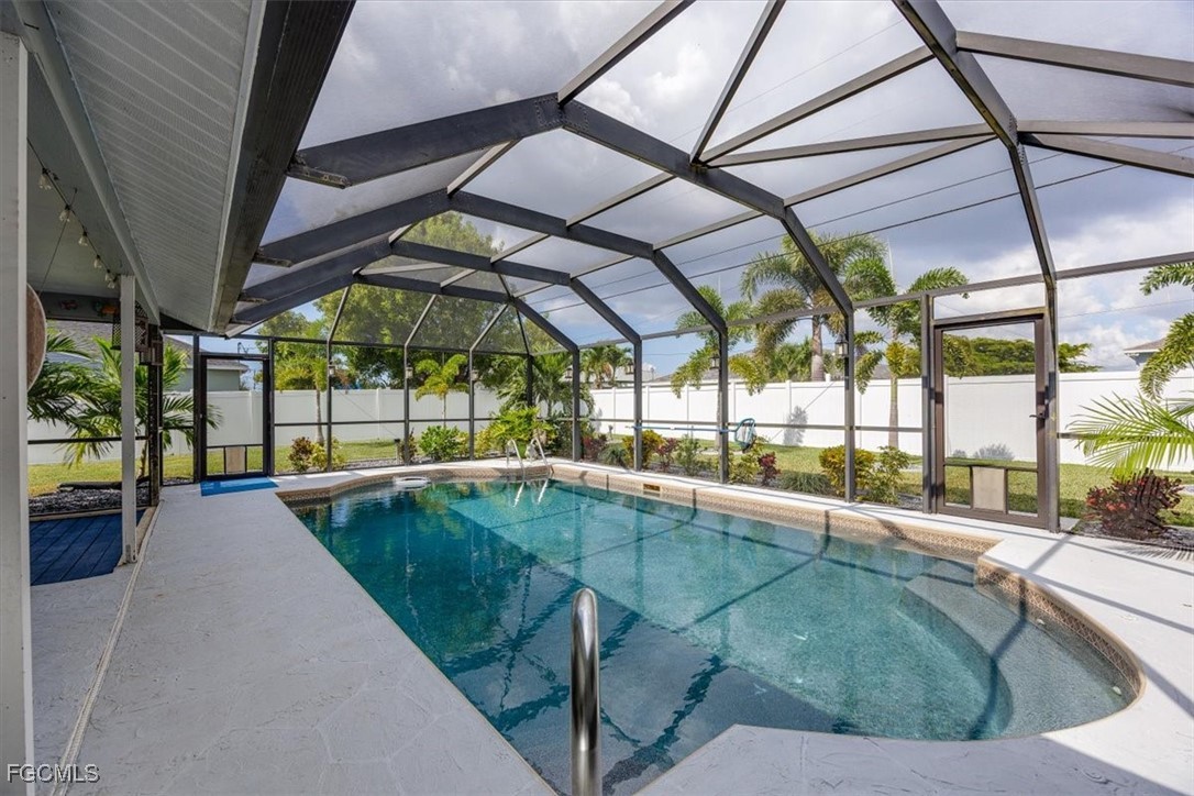 Welcome to this stunning remodeled 3 bedroom 2 full bathroom pool home offering the perfect blend of style, comfort, and functionality. This move-in ready home is designed for easy Florida living. The newer kitchen shines with black stainless steel appliances, quartz countertops with a breakfast bar and a great pass through window which makes it seamless for inside & outside entertaining with plenty of storage for the home chef. Spacious Master bedroom with walk in closet and plenty of space, recently remodeled Master bathroom with dual sinks, quartz and spacious shower. Two large guest rooms are across the spacious open living area of this home separate from the primary suite and share another tastefully remodeled bathroom that opens to the pool. Step outside to your private oasis and large screened in Lanai with inviting pool with newer pool pump, heater & salt chlorinator all recently replaced. Surrounded by a beautiful screened lanai perfect for entertaining or simply relaxing in the sun or under the large covered shaded area. The fully fenced yard sits on an impressive three-lot parcel, offering plenty of room to play, garden, or expand. Beautiful landscaping recently added to give this home the final touches. This home truly has it all, modern upgrades, outdoor living space, and a peaceful setting ideal for both relaxation and gatherings. Enjoy peace of mind with other major updates including a new roof (2023), Newer appliances including the washer & dyer, new air conditioner (2023), hot water heater (2022), Epoxy Garage floor and storage cabinets in garage. Nothing to do in this home but move in and enjoy.