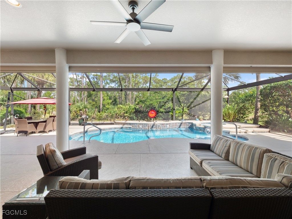 Step outside through your pocket sliders to your private saltwater pool and heated spa, surrounded by an extended pavered deck within a panoramic screened enclosure, perfect for relaxing or entertaining. The lanai is also plumbed for an outdoor kitchen for your future upgrades. Enjoy peace of mind with newly installed hurricane protection (automatic roll-downs on the lanai and manual shutters for the entire home) plus a SimpliSafe security system. Your Solar panels provide power to the entire home & pool cutting your electric bill in half! NO Flood insurance required here... HOA dues included Lawn + Land Maintenance, Basic Cable/High Speed Internet, & reclaimed irrigation. Located in the highly sought-after Bridgetown at The Plantation, residents enjoy resort-style amenities including a community pool, pickleball and tennis courts, fitness center, and clubhouse. Optional golf is available nearby at The Plantation Golf Club. Conveniently close to RSW Airport, Gulf Coast Town Center, I-75, and just 30 minutes to the beaches, this home truly has it all.