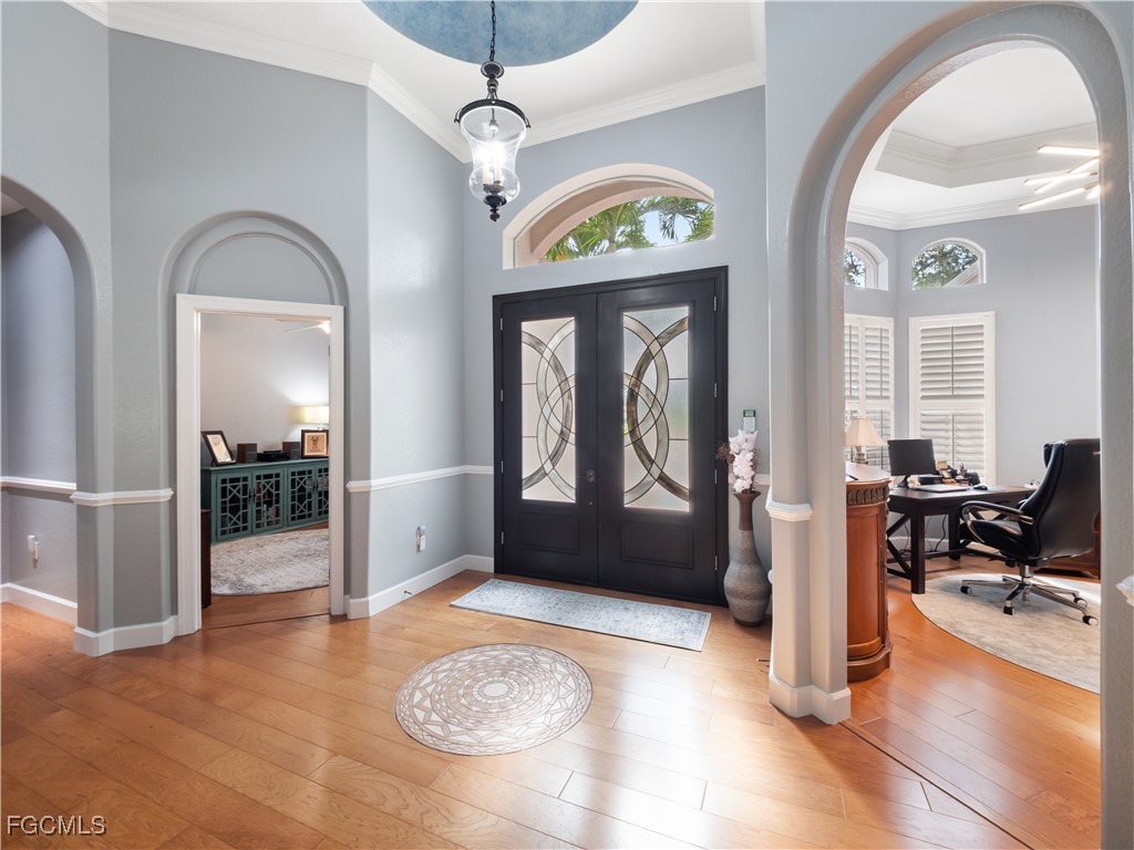 Welcome to this stunning Augusta Model, a beautifully maintained masterpiece offering over 3,000 sq. ft. of living space, perfectly situated on a quiet cul-de-sac with peaceful preserve and partial lake views...two views for the price of one! As you arrive, you’ll be greeted by mature landscaping, a large pavered driveway, and undeniable curb appeal. Step inside to find soaring ceilings with crown molding, an open-concept floor plan featuring 4 bedrooms, 3 bathrooms, and two versatile dens/flex spaces...ideal for home offices or a hobby room.