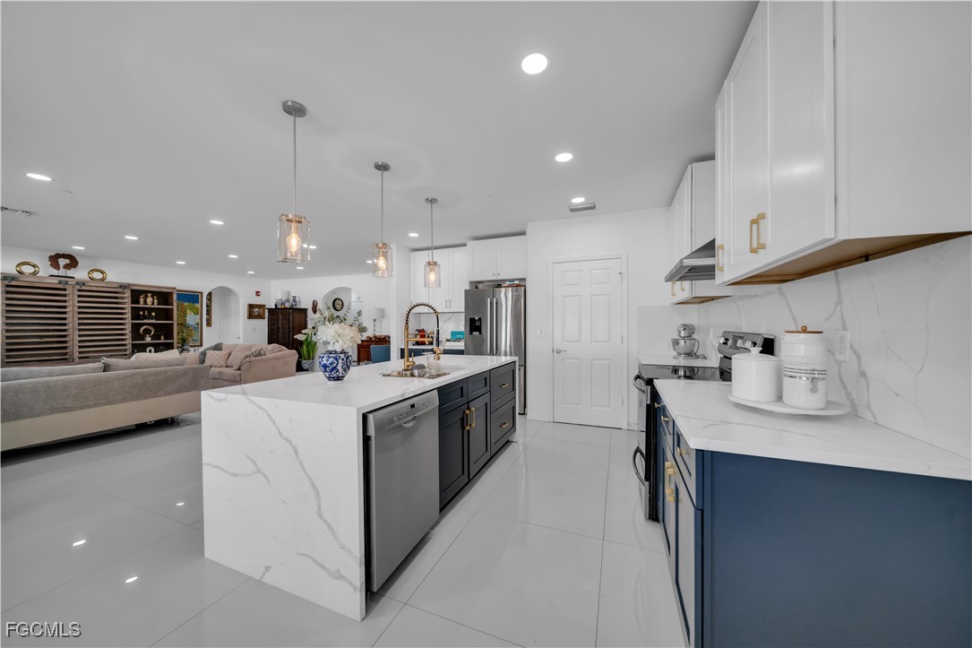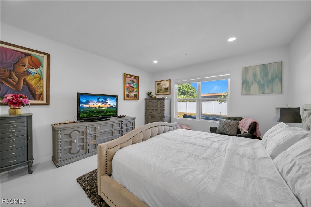 Beautiful 4-bedroom, 2-bath home in desirable Cape Coral, completely updated and located outside the flood zone. This stunning property features a new roof (2022), fresh interior and exterior paint, and brand-new porcelain tile floors throughout (no carpet). The elegant open-concept kitchen offers a large island, range, coffee bar, walk-in pantry, stainless steel appliances, and stylish modern finishes. The primary suite includes a fully renovated bathroom with contemporary tile and fixtures, while all bedrooms are spacious and comfortable.