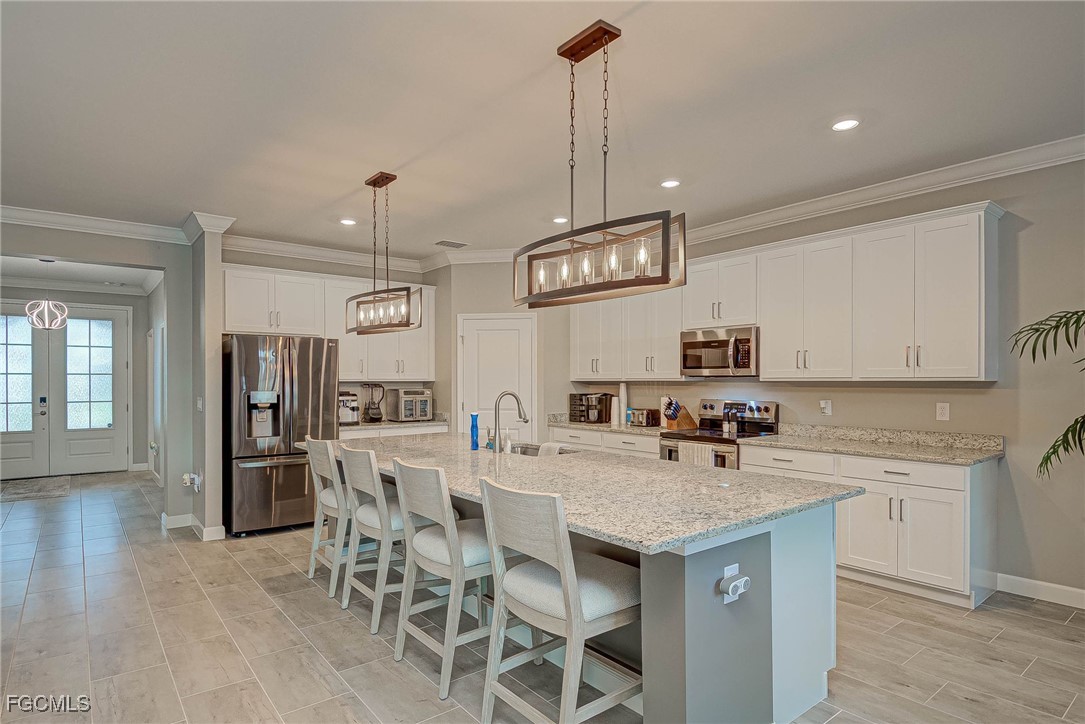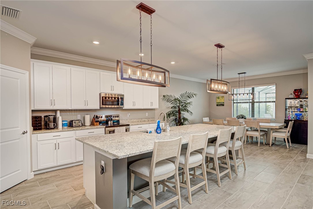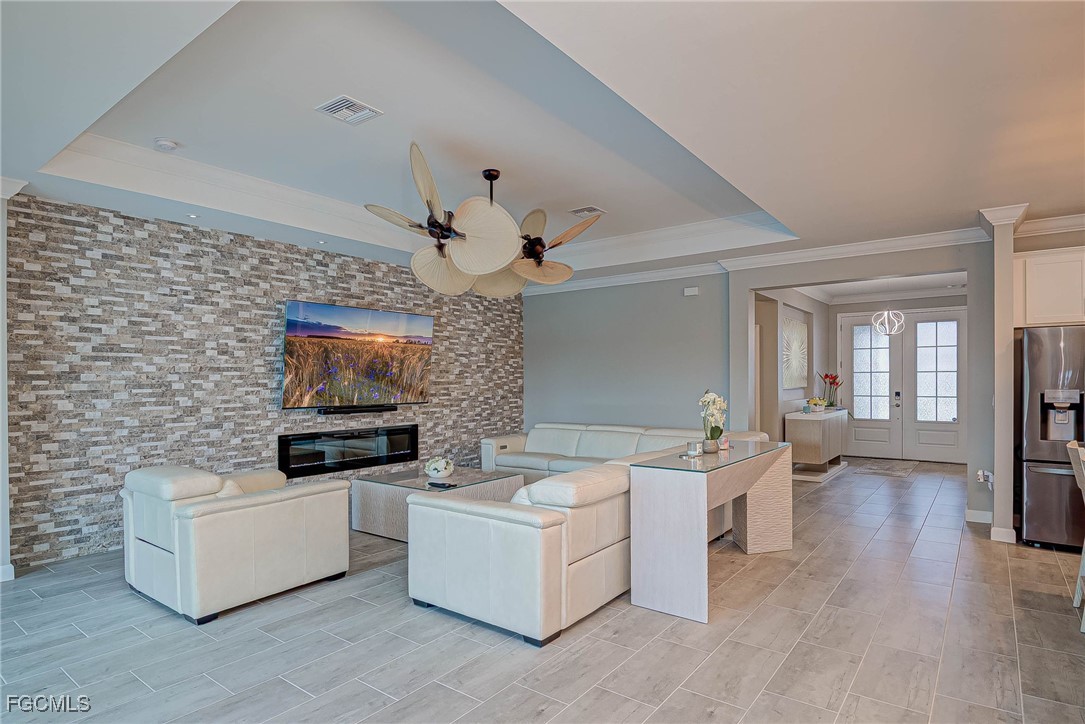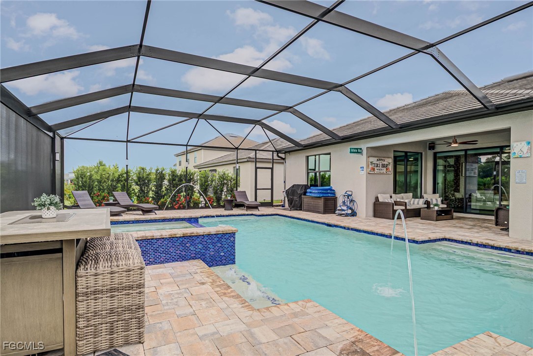 Absolutely Stunning! This Executive Customized Pool/Spa Home is arguably the nicest home ever come to market in Timber Creek. Being offered Turnkey Furnished, from the Bernhardt furniture, electronics including all TV's, speakers, appliances, pots, pans, flatware, linens and much more. Finishes include cultured stone accent wall with linear fireplace and 86" Television, crown molding, automatic blinds in master & living room, Custom carpentry and murphy bed in 4th bedroom/office. Ready to entertain? Your outdoor Oasis includes an oversized lanai, Spiro custom built pool with an eat-in table & benches, full functioning 6 jet hot tub with separate heater with air jets. Pool is equipped with bubblers and shooting water jets with color chasing lights. Car, Motorcycle enthusiast, handyman take a look at this unbelievable 3 car garage. Garage has a high tech commercial epoxy floor, wall mounted mechanics locking storage with stainless workbench. Amazing amount of storage and yes the garage is air conditioned.Timber Creek offers state-of-the-art amenities including a restaurant, fitness center, sports courts, resort and lap pools, a putting green, playground, and much more! Timber Creek is conveniently located near I-75, RSW Airport, Gulf Coast Town Center, JetBlue Park, top-rated schools, restaurants, and shopping!