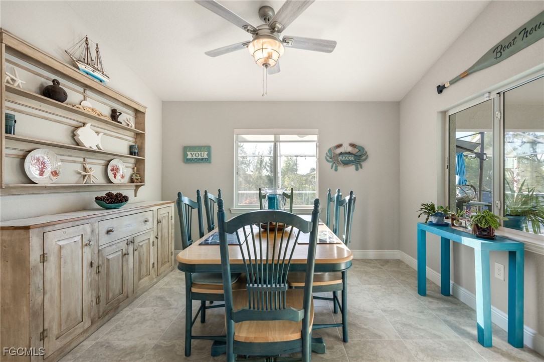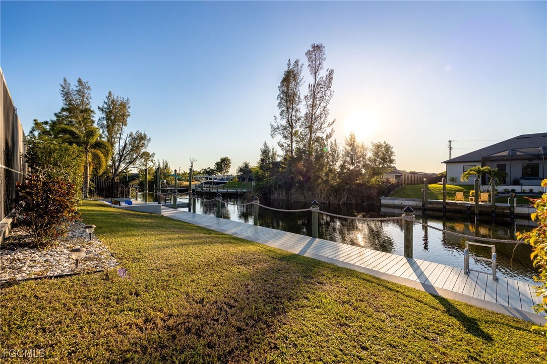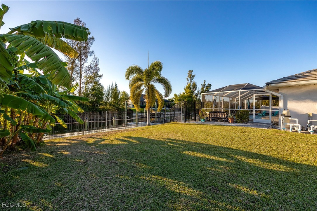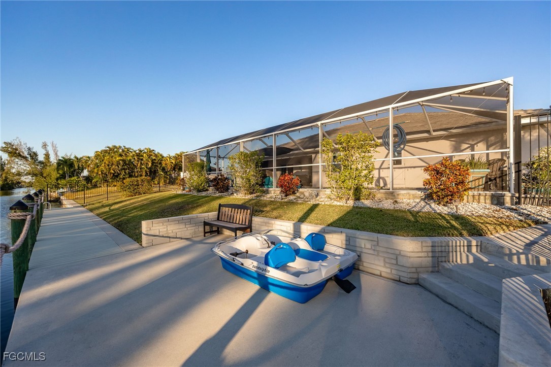 Outside, relax in your large heated saltwater pool, which comes with a child safety fence for added security, all contained within the fully screened lanai, or take advantage of your composite dock which runs the length of the property with ample space to add a boat lift for sunset cruises. The large fenced-in yard, with 6 zone irrigation, is ideal for pets or play, and features Blue Java Banana plants that will soon be ready to enjoy!