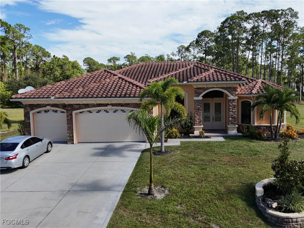 Here is what you have been looking for as your dream home, this stunning 3 bedroom, 4 bathroom home is definitely for you, every detail of this home has been thoughtfully designed for comfort and elegance. The entire house features chrome molding finishes, LED ceiling décor, and the garage includes a side door leading to the patio, as well as a small storage room, perfect for any project or future ideas you may have for the garage. Each of the spacious bathrooms features extended granite vanities, oversized mirrors, and beautifully tiled showers that reach all the way to the ceiling for a luxurious spa like feel, also the 4th bathroom is perfect for visitors leaving each other bedroom to have their own separate private bathroom, home is also featuring a spacious 3 car garage and over 2,300 sq. ft. of living area. Built in 2019, this property combines modern construction with timeless elegance. The exterior showcases beautiful brick and stone accents, adding a touch of sophistication and curb appeal. Inside, you can find refined details throughout, including elegant crown molding and high quality finishes, Huge Kitchen with spacious granite counter, tall cabinets, stainless steel appliances, 2 ovens, a stainless steal range hood, that make this home truly stand out. The open floor plan and natural light create a bright and inviting atmosphere house features a lot of impact windows, and some transom windows in some of the rooms, perfect for both everyday living and entertaining. The laundry room offers both style and functionality, with granite countertops, extra cabinetry, and plenty of workspace for added convenience. The exterior of the home showcases a beautifully landscaped garden with well maintained plants that perfectly complement the elegant finishes of this stunning property. The back lanai features a beautiful paved floor and multiple access doors to the house, and it’s also prepped with connections to install an outdoor kitchen if desired. Situated on 2 acres of cleared land, this property offers endless opportunities. Originally sitting on a half acre lot, the owner purchased the adjoining parcels, now totaling three additional half acre lots, giving you room for future projects, a pool, extra parking, or even the potential to build additional homes because each parcel has their address. Right next door you will find a scenic canal, perfect for relaxing, or simply enjoying the peaceful Florida lifestyle, it is a space for endless outdoor fun. This Property is located in a rapidly growing area near sunshine and lee blvd, with plenty of shopping centers, and even more developments coming soon... offering convenience, privacy, and incredible value. Just a short drive to nearby beaches, restaurants, schools highway I-75 and 82 Road, is also not located in a flood zone, it’s rare to find a property with this combination of elegance, size, flexibility and price.