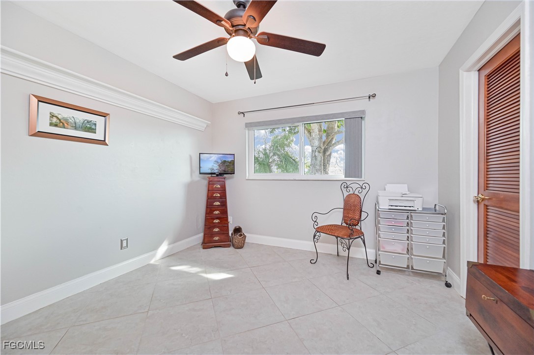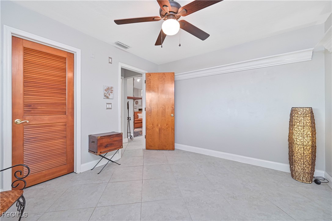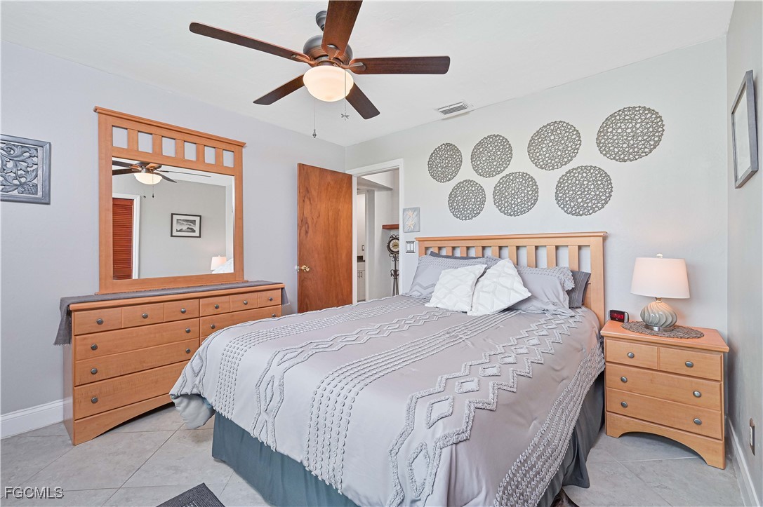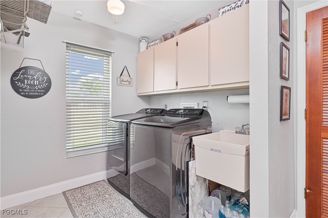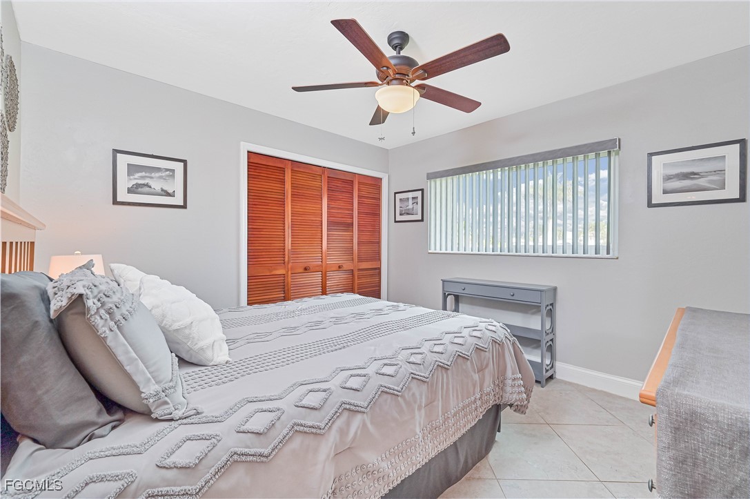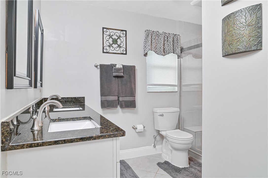 Beautifully tiled throughout, the home features a spacious primary suite with walk-in shower, dual sinks, and large walk-in closet. The primary bedroom offers private access to the lanai and outdoor spa, while the guest bath also opens to the lanai for poolside convenience. Bedroom 3 includes a generous walk-in closet for extra storage.