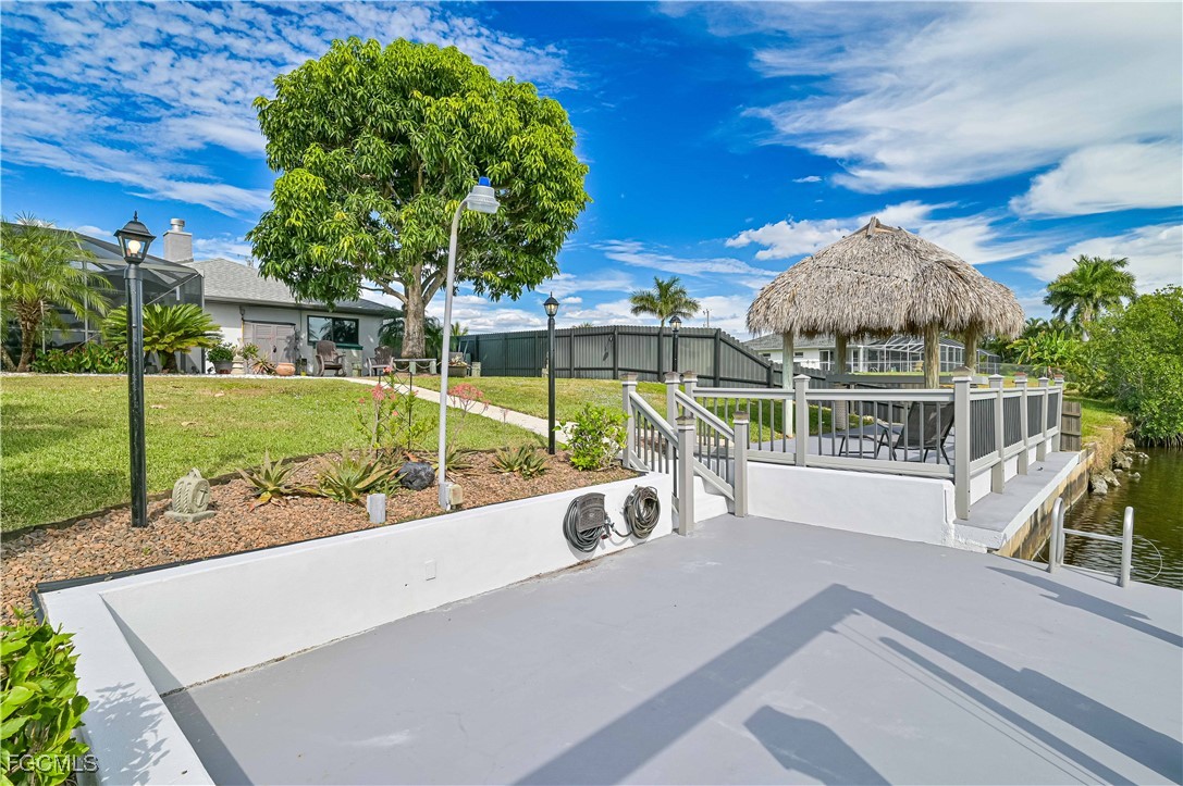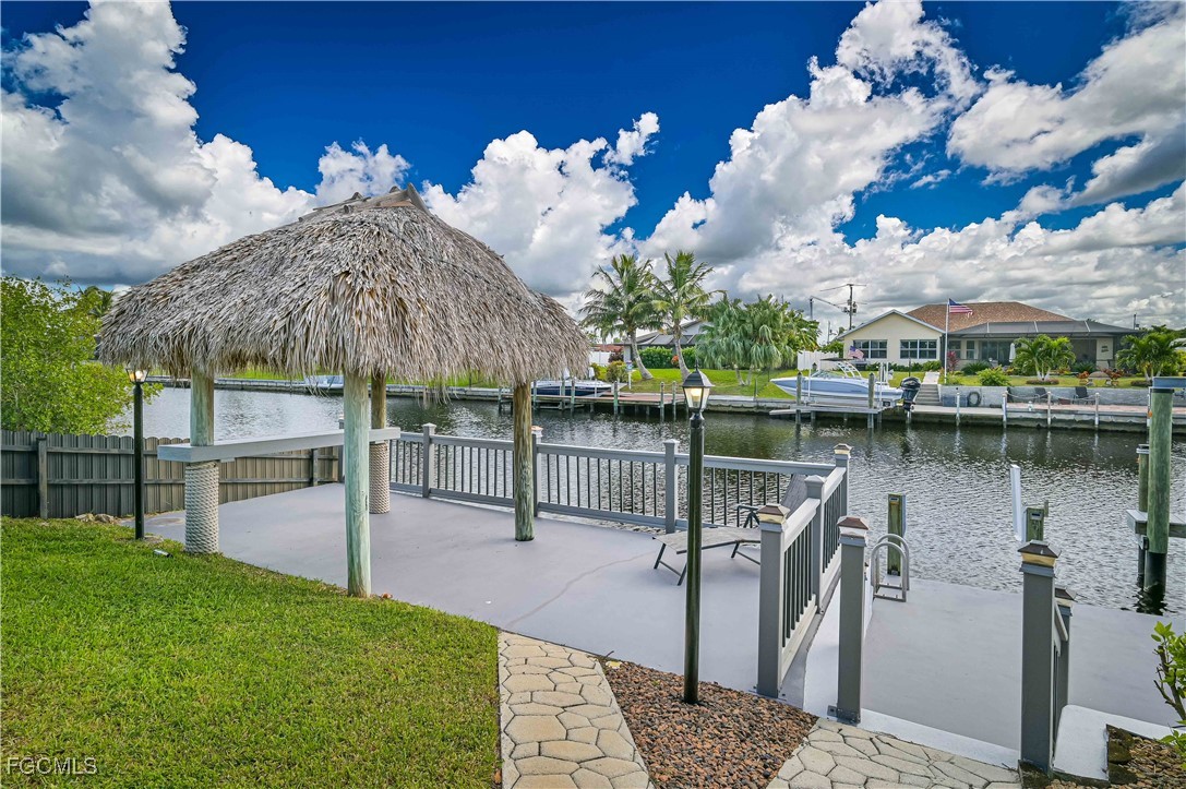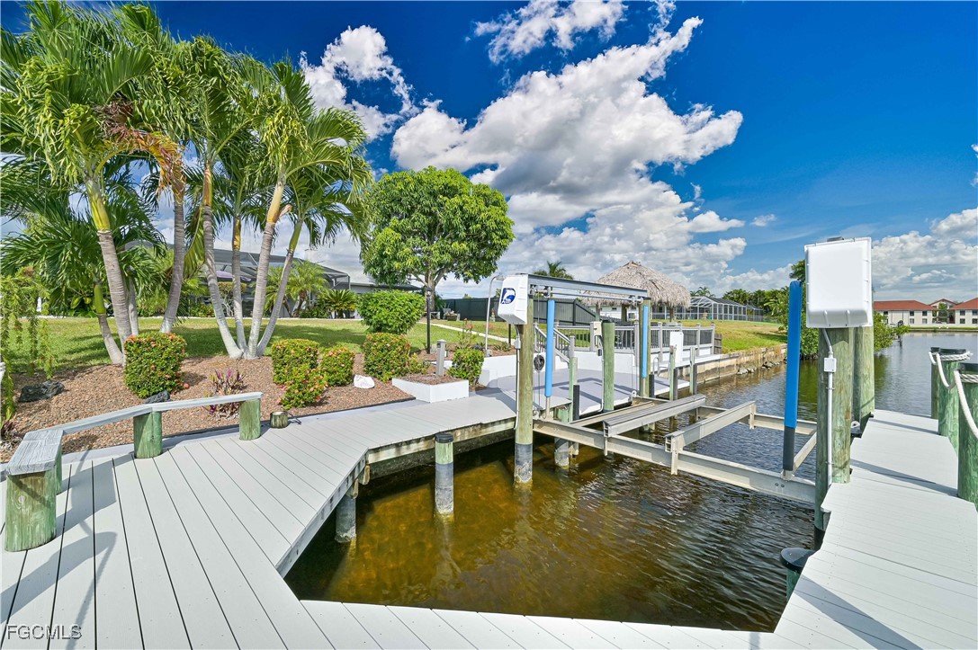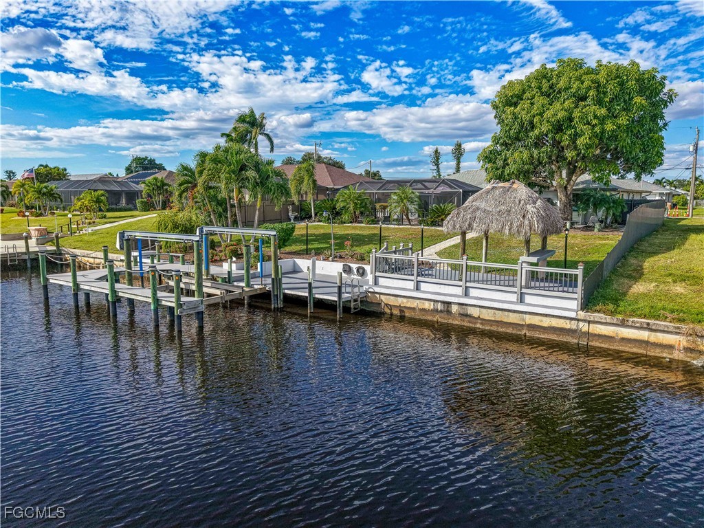 This exceptional Cape Coral home offers direct Gulf access and sits on a rare oversized 143 ft deep lot with desirable southern exposure. Enjoy true waterfront living with a 12,000 lb boat lift, wrap-around dock, and a Tiki Hut on a cantilever deck - the perfect place to relax by the water.