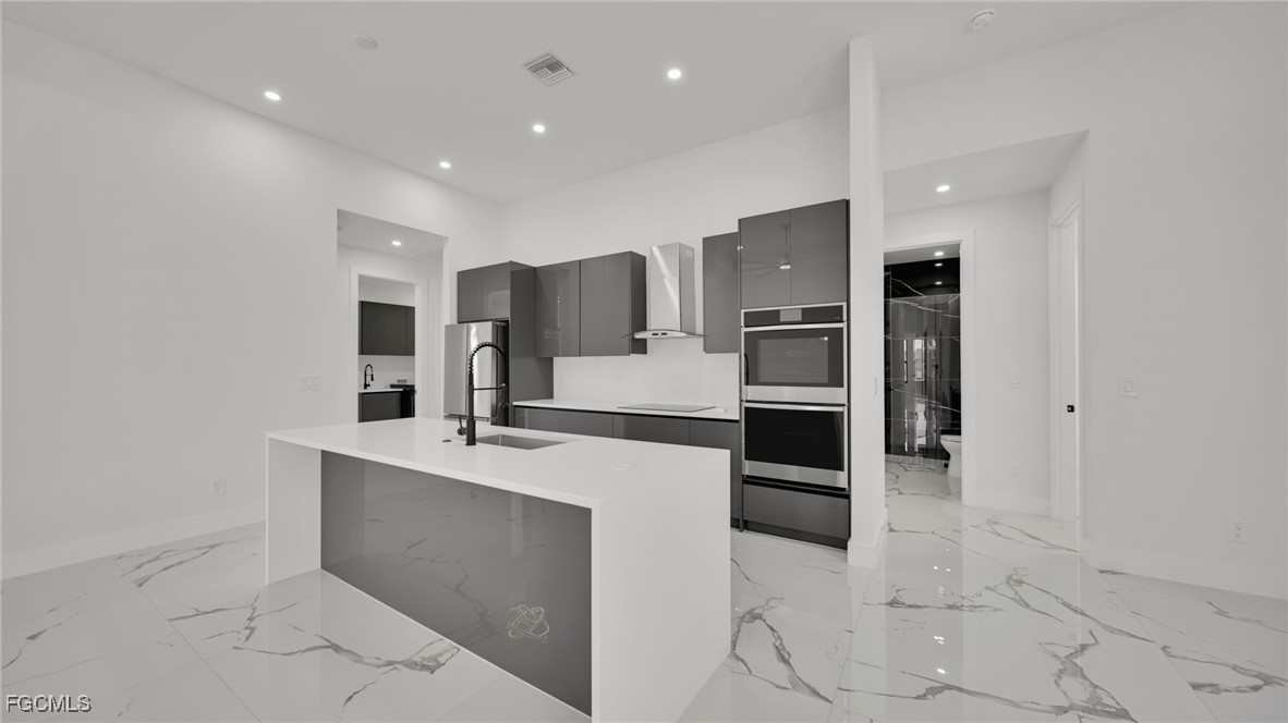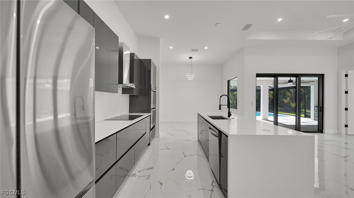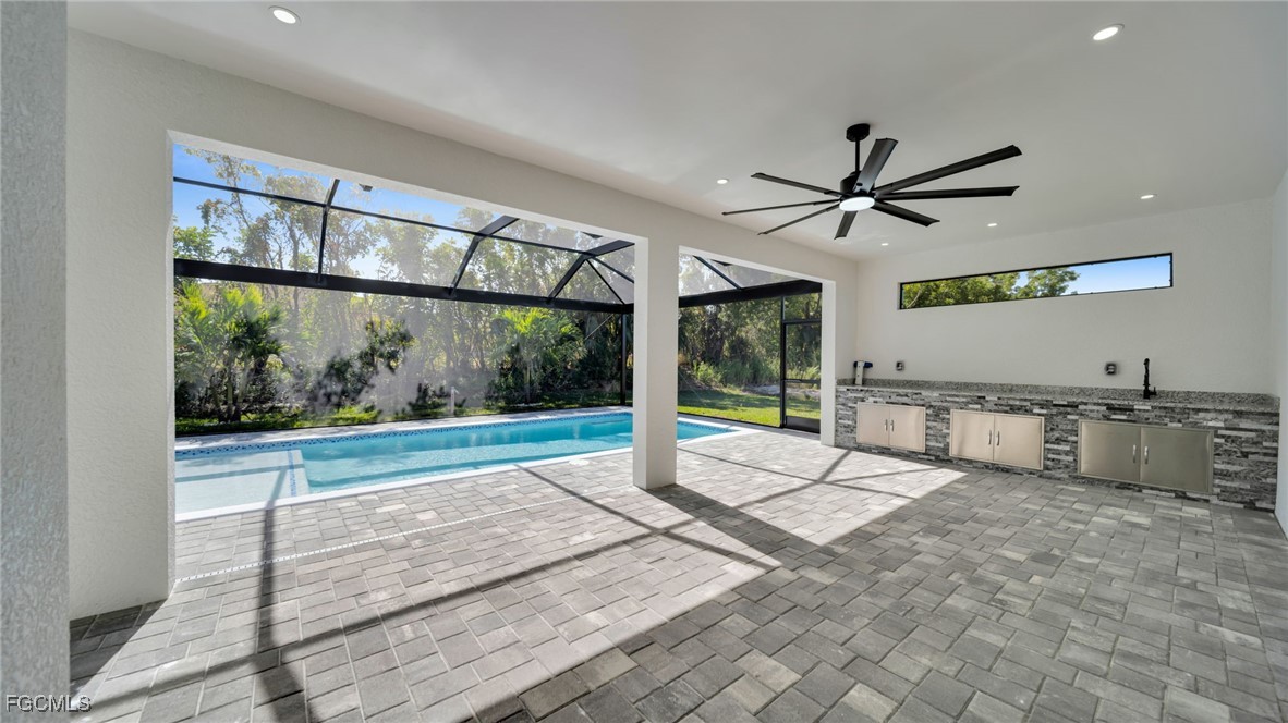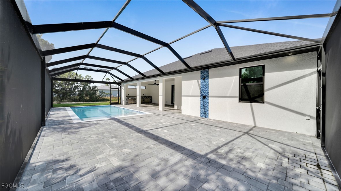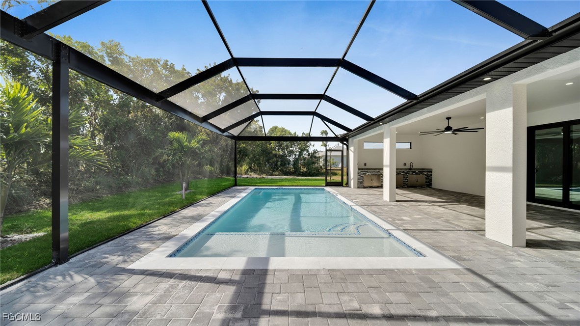 Welcome to this stunning new construction 4-bedroom, 2-bath pool home offering modern design and high-quality finishes throughout! Featuring impact windows and doors, city water & sewer, and an open-concept layout with 1,910 sq ft of living area. The gourmet kitchen boasts sleek cabinetry, a wall oven, stainless steel appliances, and a spacious island perfect for entertaining. Enjoy true Florida living with a large screened-in pool enclosure, expansive covered lanai, and a beautiful summer kitchen perfect for outdoor dining and gatherings. The primary suite includes dual sinks and a walk-in shower. Washer & dryer included. Home comes with a 1-year builder warranty for peace of mind. Stylish, efficient, and move-in ready — this home is built to impress!