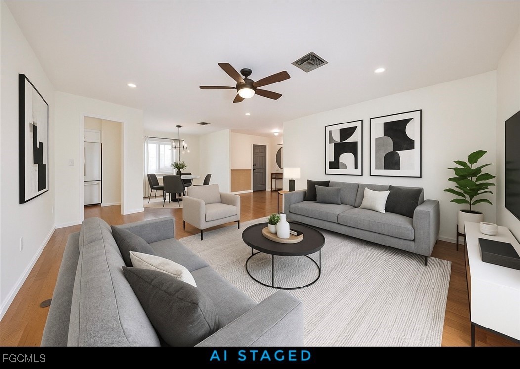 Here, you may keep horses—with a horse stall available and gentle steeds grazing along the fence line at the edge of your expansive, nearly half-acre property. You may swim in your private pool, play tennis, stroll by the community pond and gazebo, or enjoy tranquil afternoons in the community park beside the Gulf-access canal—all within your own community. The private movie set-like road is shaded by towering live oaks draped in Spanish moss, evoking the nostalgic charm of another era. During the holidays, the neighborhood transforms into a living tableau—Halloween becomes a local pilgrimage for families, and Christmas glows like a Norman Rockwell painting come to life. The home itself spans 2,187 square feet of well-planned living space with three bedrooms, two bathrooms, and a spacious enclosed lanai overlooking the fenced-in pool and sweeping backyard. Your new home offers a formal living room, large family room, and the kitchen space is simply a chef's dream. Constructed of concrete block, it includes a large laundry room and ample natural light throughout. Behind the home runs a "bridal walk", inviting morning rides or evening walks beneath whispering oaks. Currently, there are no homes for sale in Hidden Acres, as the residents simply do not want to move. When you are looking out over your pool, across your massive backyard, and see the horses hanging their heads over your fence, waiting for you to come say hello, you will understand why homes in Hidden Acres are rarely available for sale. Hidden Acres further provides designated storage for boats, RVs, or campers, allowing residents to keep their recreational treasures close at hand—a luxury seldom permitted within city limits. This gated community offers the serenity of country living with the convenience of city proximity—mere minutes from shopping, dining, schools, and downtown Fort Myers, and less than a mile from Cape Coral. Yet once inside the gates, it feels as though you’ve entered another world—a tranquil retreat hidden within the heartbeat of Southwest Florida. Opportunities to purchase within Hidden Acres are exceedingly rare; most residents remain for decades, reluctant to relinquish their piece of this cinematic paradise. Launch your boat to the Gulf, walk your horse, and play tennis, on the same day. For the discerning buyer, this is not simply a home—it is a lifestyle, an experience, and a story waiting to be lived.