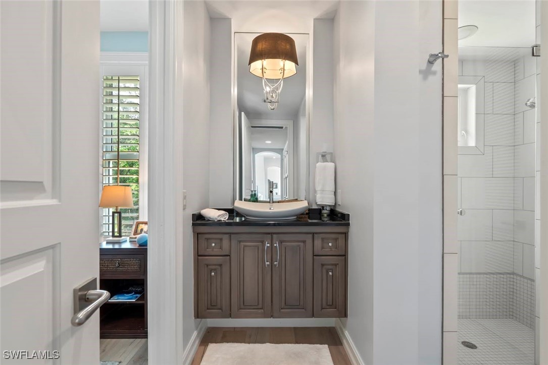 Step inside to discover a stunning, reimagined modern chef’s kitchen, warm wood and stone floors, and expansive glass doors framing tropical preserve views. The spa-inspired master suite offers private tranquility, while the sleek glass-enclosed living areas flow seamlessly to an outdoor oasis—ideal for poolside entertaining under swaying palms.