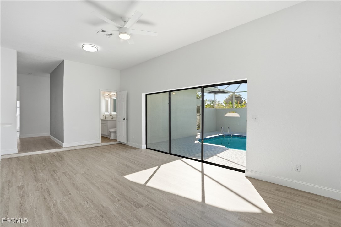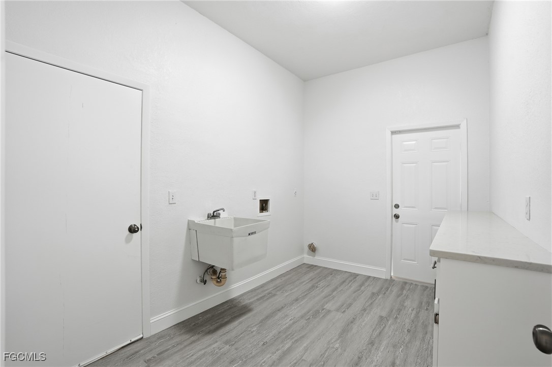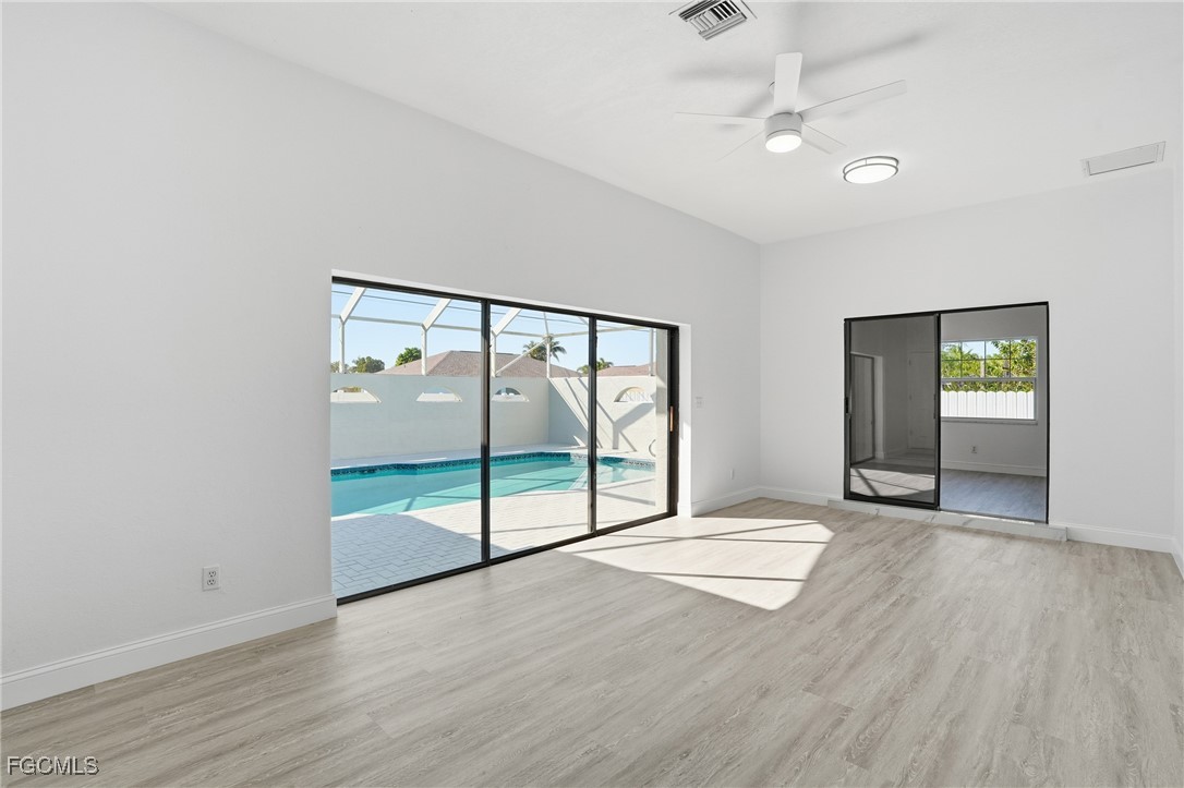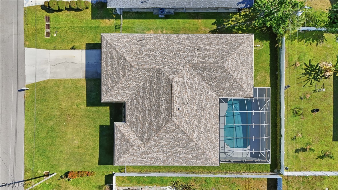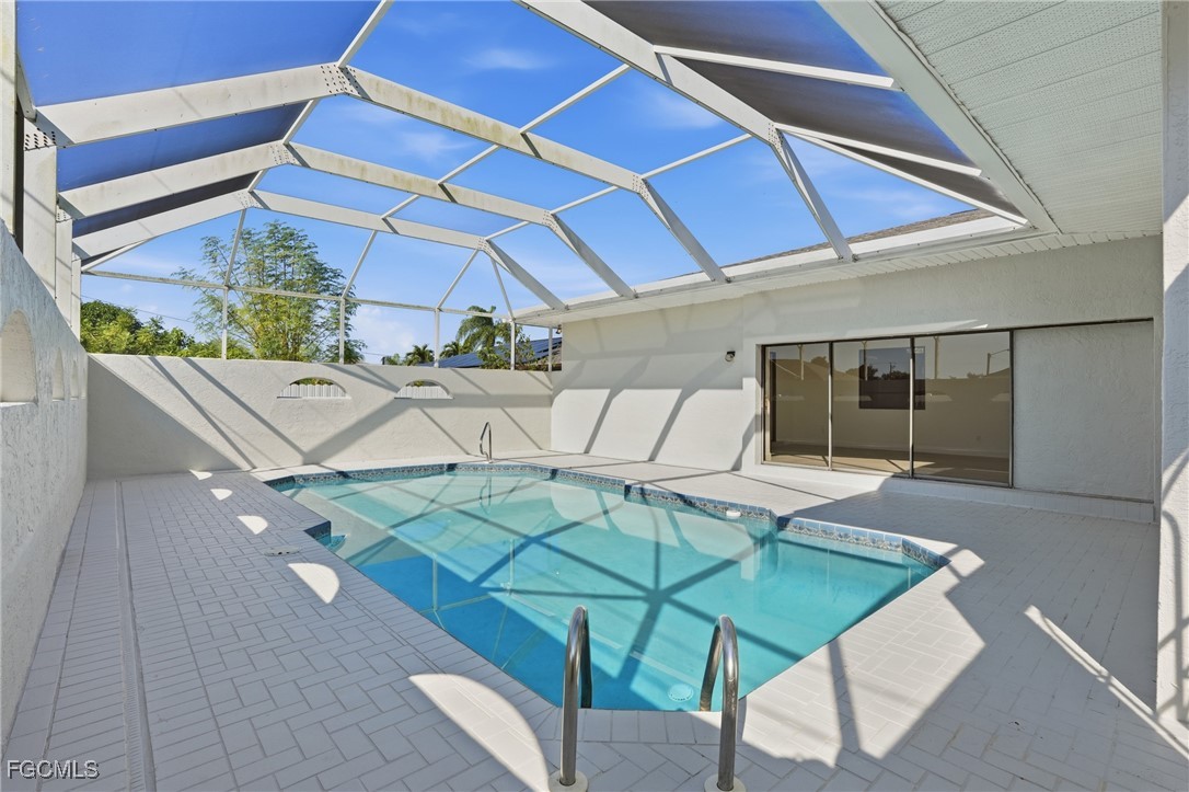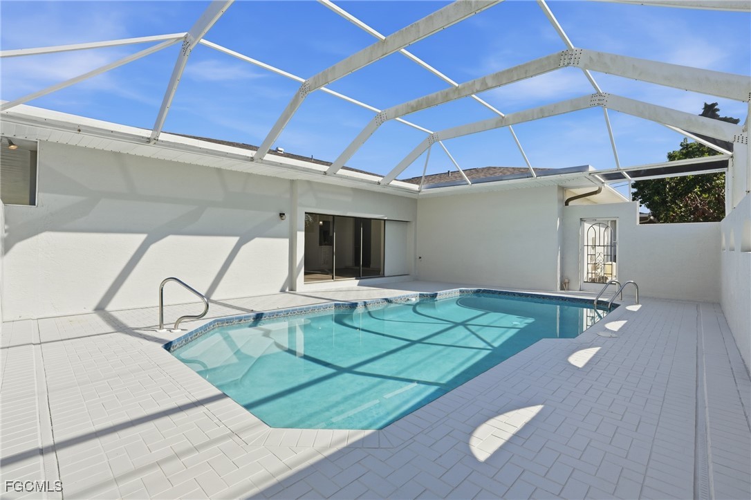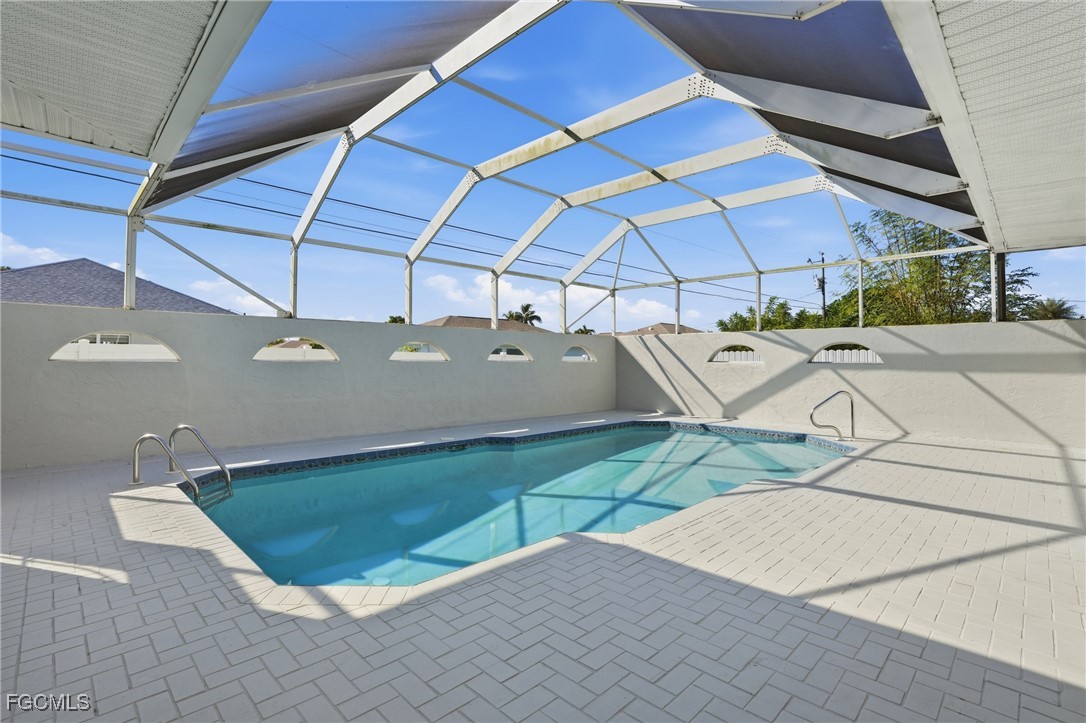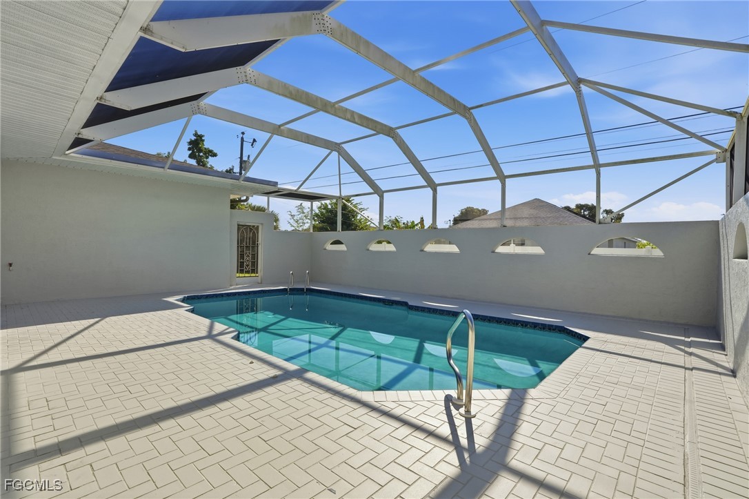 An indoor laundry room with quartz counters and storage cabinetry keeps daily tasks organized. The screened in-ground pool area offers exceptional privacy and a sleek backdrop for outdoor lounging. The fenced yard is ideal for children or pets. Major upgrades include a new roof, new AC, new flooring, new paint inside and out, new kitchen, new bathrooms, new lighting, new fixtures, new garage door, and more. Not located in a flood zone — no flood insurance required.