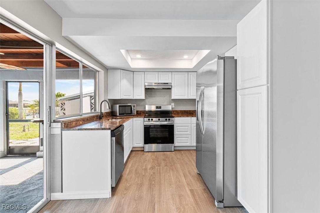 A Boater’s Oasis in Southeast Cape Coral! Welcome to your dream waterfront retreat, perfectly situated on an oversized lot in the highly desirable community. This boater’s paradise offers direct Gulf access via the expansive 100’+ wide Tequila Canal. With a 10,000 lb boat lift that can house a 32’ boat, you’re just a relaxing 20-minute cruise to open water! After a day on the water, unwind with a sunset swim in your 9’ deep pool, enclosed by a brand-new wide-view pool enclosure and featuring a new pool liner. The spacious screened lanai is perfect for relaxing or entertaining year-round. Step inside to find a light-filled, structurally sound home boasting numerous upgrades, including a renovated kitchen with stainless steel appliances, new A/C, roof, gutters, and an impact-resistant garage door. Natural light fills the living areas, enhancing the warm and inviting atmosphere. Conveniently located just minutes from all the excitement dining, shopping, and entertainment Downtown Cape Coral has to offer. This home perfectly blends tranquil waterfront living with urban convenience. Don’t let this unique jewel slip away—schedule your private showing today!