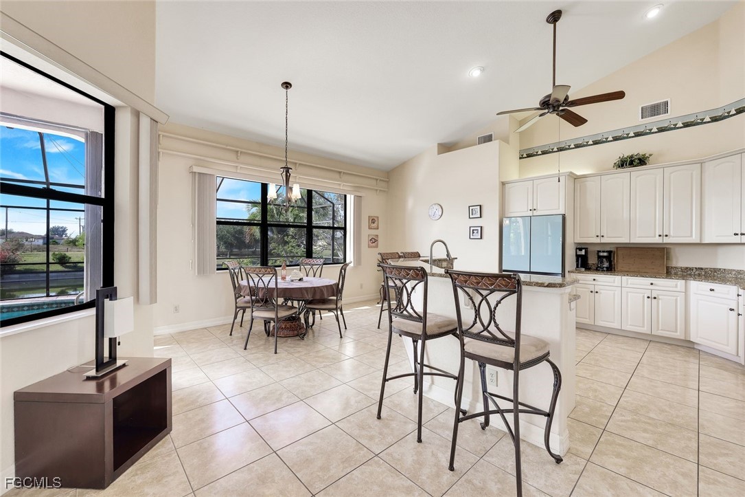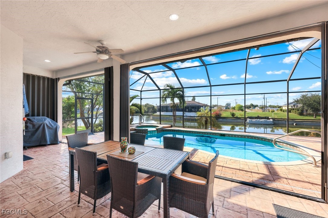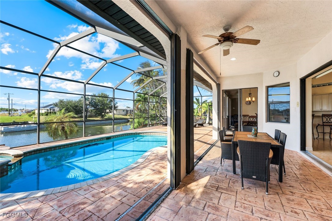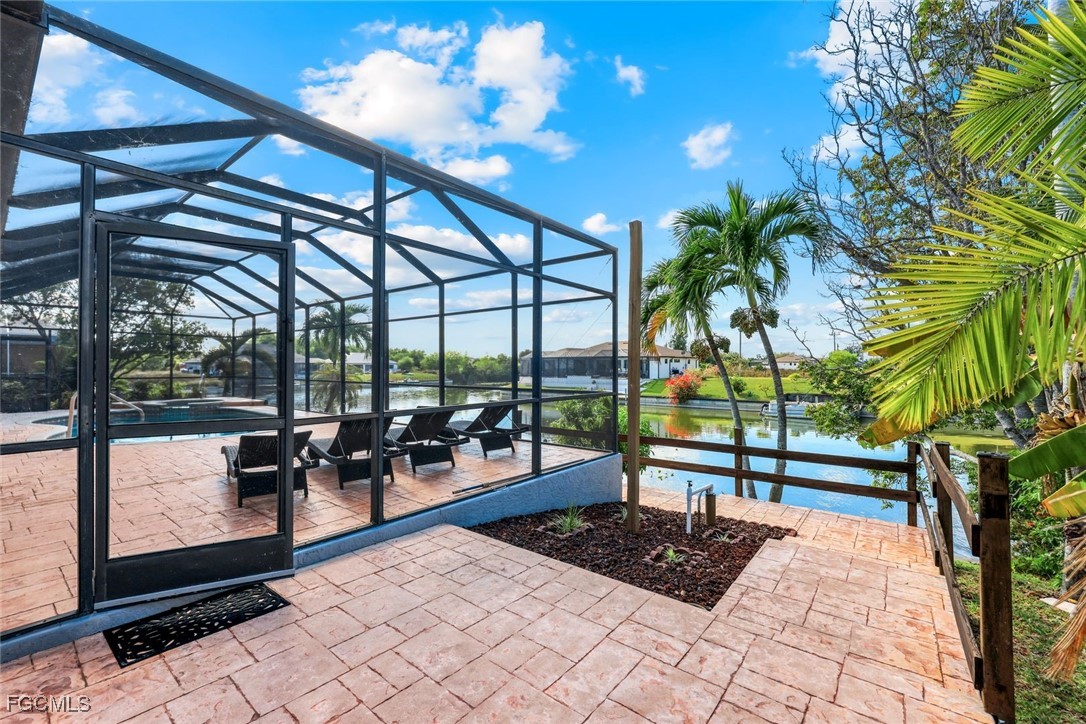 Gorgeous views – western rear exposure - to the 120’ wide intersecting canals. You will enjoy the amazing sunsets from your extra large lanai with stamped concrete. Heated Pool - solar and electric – with a nice spa.