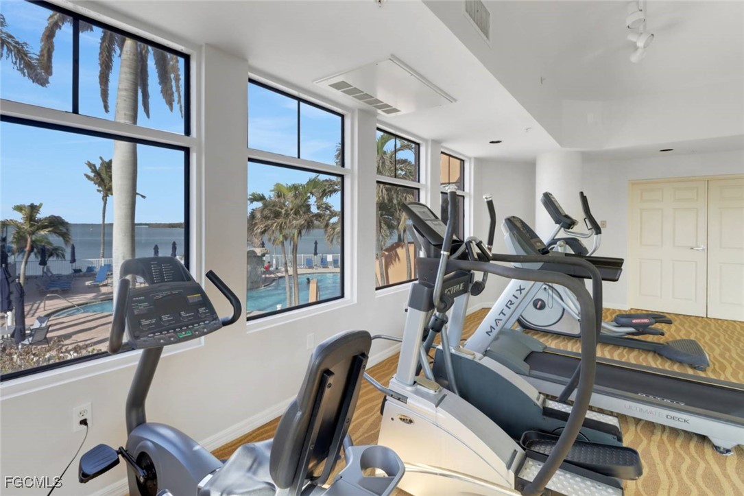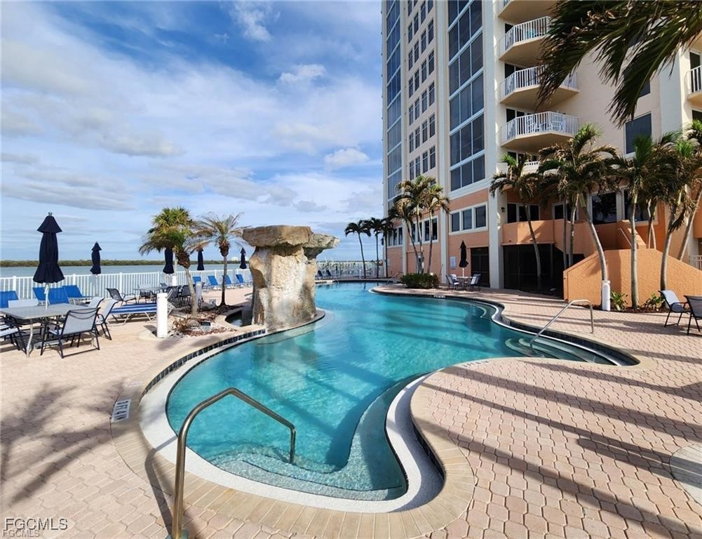 THE BEST LOCATION IN THE COMPLEX! Floor-to-ceiling glass walls overlooking Estero Bay toward Fort Myers Beach. Extra spacious one bedroom, one bathroom condo on the sixth floor with DIRECT Bay views directly facing the water, and just across the street from Lovers Key State Park's beaches, kayaking and nature trails. A resort style pool and hot-tub are yours to enjoy everyday. Onsite fitness center. Unit is currently placed in the onsite resort rental management program (optional) for owners that would like to rent out their units when they are not using it. This floorplan offers a full size kitchen with counter bar, along with a huge bathroom with both a standup shower and a soaking hot-tub. Private balcony to watch the boats and the dolphins in the bay! Mainland access to Bonita Beach and Naples is convenient year 'round from this secluded location. Across Big Carlos Pass bridge you will find Fort Myers Beach, with its nightlife and entertainment venues. If you prefer a quiet night at home, Flipper's-on-the-Bay Restaurant offers fine dining right at the property. Community laundry and storage are on the ground floor. Don't miss out on this one!