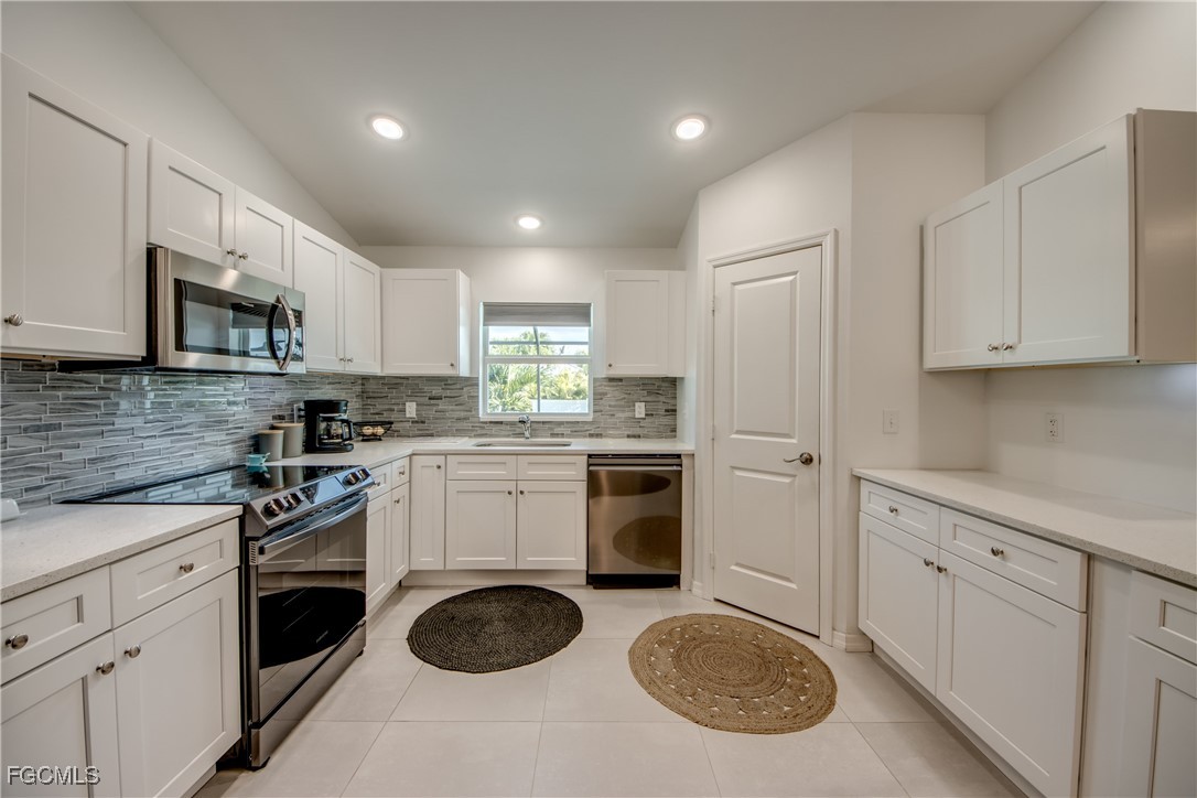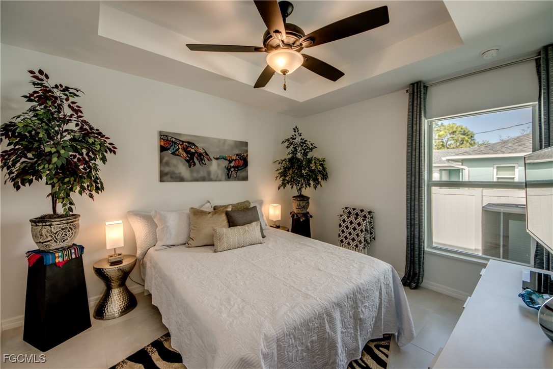 Exceptional 4-bedroom, 2-bath (or could be a 3+den), 2-car garage home packed with premium upgrades—located in a highly desirable NO-FLOOD ZONE with HURRICANE IMPACT WINDOWS! This modern, move-in-ready property stands out with a flexible 4th bedroom that can serve as a home office, gym, or playroom, and sleek porcelain tile flooring throughout for a fresh, unified look. Tray ceilings in every bedroom add volume and style, creating an open and airy feel.
