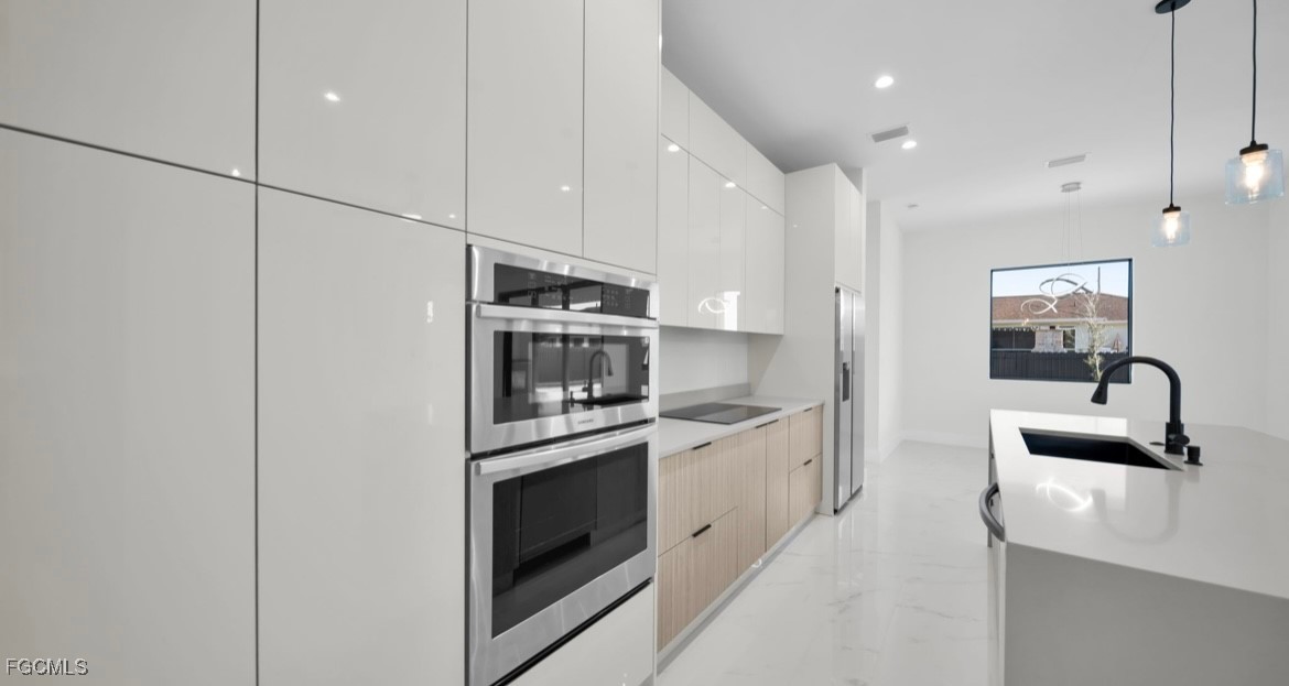 Enjoy a private saltwater pool, an elegant outdoor kitchen, and a fully fenced yard with modern privacy fencing, creating a true resort-style ambiance. Inside, the home showcases contemporary custom cabinetry, high-end finishes, and clean architectural lines throughout. The property is enhanced by an oversized paver driveway, a 2-car garage, and built with impact-resistant windows and doors for comfort, security, and energy efficiency.