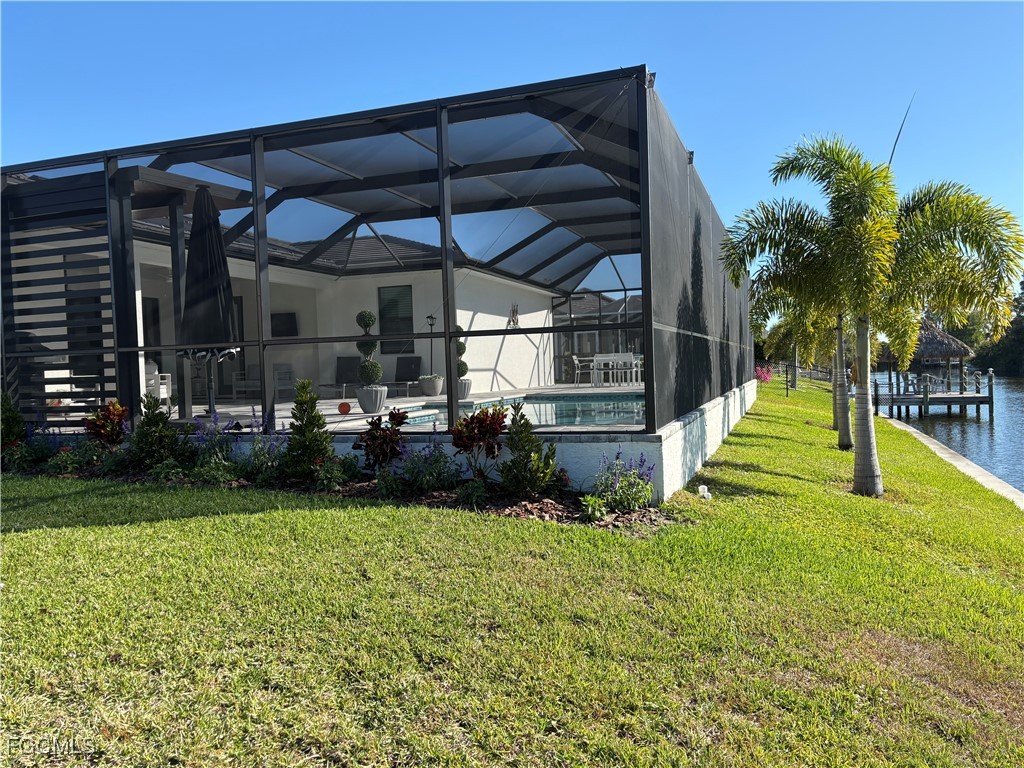 Built in 2023. Beautifully upgraded 4 bedroom 2 bath luxury home offering comfortable living space. The home can also be configurated 3 bedroom with a large den, perfect for home office or media room. The property features a cement tile roof, energy-efficient foam insulation and a solar heated pool for year round enjoyment. Large windows and an open layout provide plenty of natural light and offer stunning views of freshwater canal behind the home.