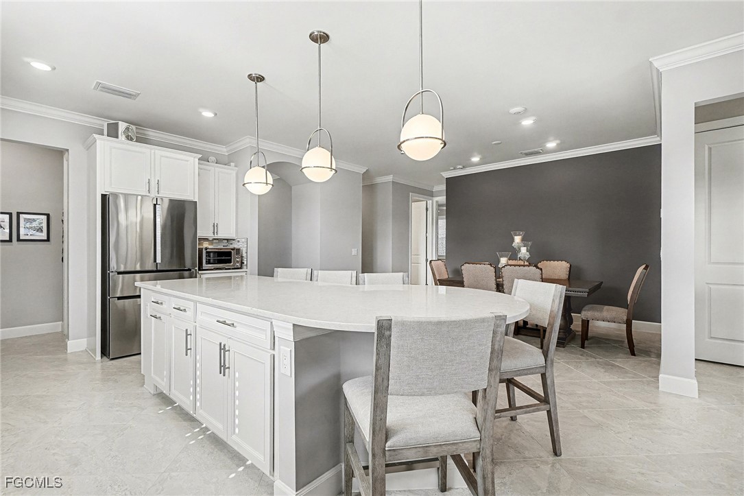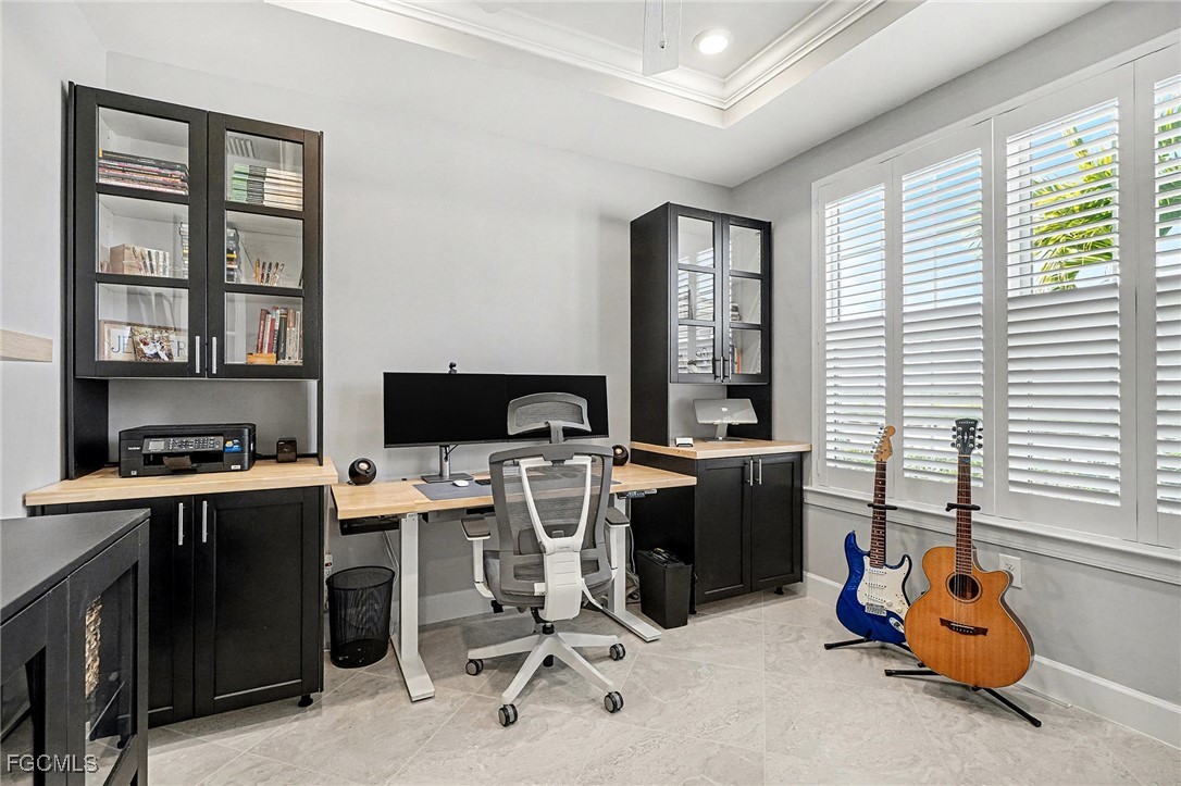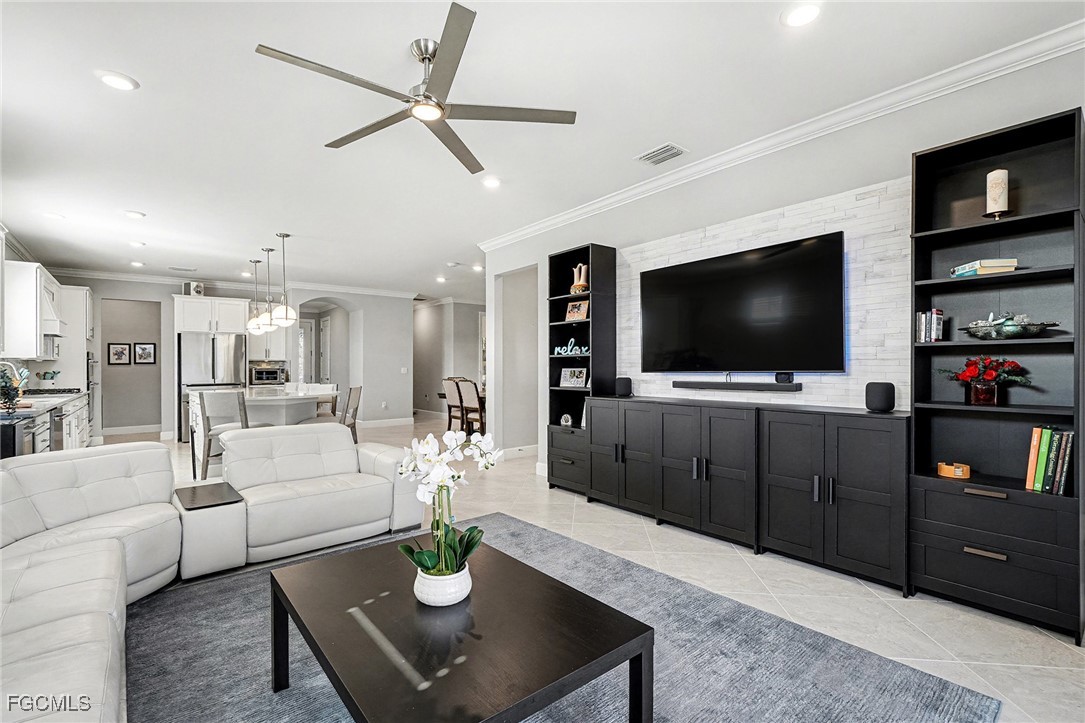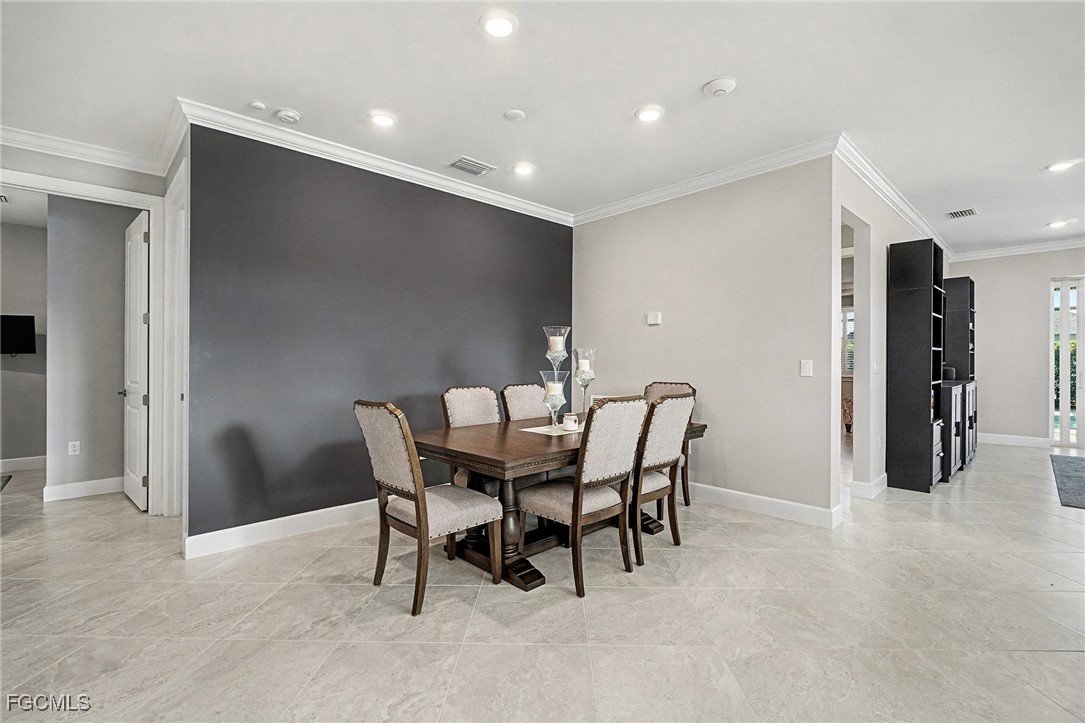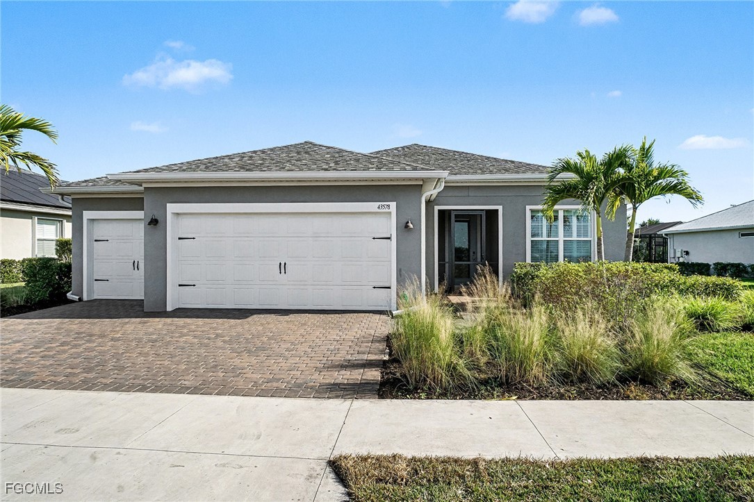 Welcome to this elegantly designed home featuring a three-bedroom plus flex room, two-bath layout with a custom pool and spa, situated on an oversized lot. The rarely available Martin Ray floor plan offers a sophisticated blend of comfort, convenience, and style. Designed with an open-concept layout, the home is ideal for couples and small families alike. Entertaining is effortless with a seamlessly connected chef's gourmet kitchen, dining area, and spacious gathering room. A versatile flex room provides endless possibilities as a den, home office, or even an additional bedroom. Standout features include a spacious kitchen island with seating for up to six, a coffee and wine bar conveniently located just off the kitchen and top-of-the-line upgraded appliances. The home is enhanced by stylish, modern light fixtures, and ceiling fans, while elegant crown molding and ceramic tile flooring throughout create a polished, cohesive finish. Storage is abundant with a large walk-in pantry and generous closet space throughout. Smart home features add convenience and efficiency, and every detail has been thoughtfully planned to support both everyday living and relaxed entertaining. Enjoy the best of indoor/outdoor living with a large pocket sliding door that opens from the gathering room to an extended covered lanai. The outdoor space features a custom resort-style heated saltwater pool and large spa with waterfall feature, creating the perfect setting for entertaining or unwinding. Spend endless days and sunset evenings relaxing in the tranquility of your own private oasis. The private owner’s suite offers a peaceful retreat. The en-suite bath features a spacious super shower and dual sinks, while the custom-designed walk-in closet provides exceptional organization and storage. Two guest bedrooms are thoughtfully located at the front of the home, offering privacy and comfort for family and visitors. The home also features a spacious upgraded laundry room with a wash sink. A convenient drop zone welcomes you to a large three-car garage offering ample storage, a mini-split system for added comfort while working on projects and an upgraded epoxy flooring. Enjoy seamless access to the vibrant lifestyle of Babcock Ranch, thanks to this home’s central location near Cypress Lodge, Innovation Tower, Founder’s Square, Babcock Ranch School and shopping. Conveniently situated close to entertainment, events, and community amenities. This home places you right in the heart of the area’s active social scene. Enjoy the exceptional community amenities of Babcock Ranch, including two resort-style community pools, miles of walking and biking trails, and several parks offering activities for all ages. Amenities include basketball courts, fishing areas, playgrounds, pickleball and tennis courts, bocce ball, a skate park, and two dog parks—just to name a few. Experience the Babcock Ranch lifestyle—it’s more than a community; it’s a way of life with something for everyone.