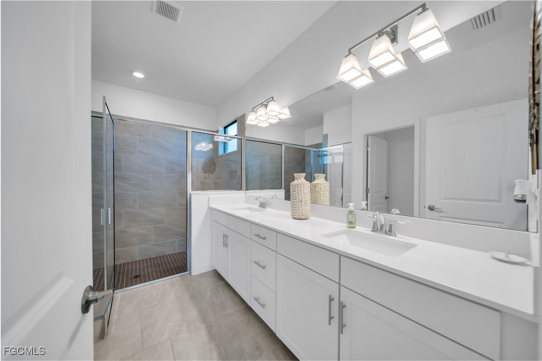 The open concept design boasts a spacious great room that flows seamlessly into a gourmet kitchen with stunning quartz countertops stainless appliances a large island pantry and elegant finishes. Enjoy formal dinners or casual meals in the dedicated dining area while the two owner suites provide private retreats with spa like baths ample walk in closets featuring custom built-in organization and the home has an east facing sunrise view with a partial lake view all with beautiful tile flooring. The two additional bedrooms offer comfort and flexibility with plush carpet making this home ideal for entertaining or everyday relaxation. Tile flooring runs throughout main living areas for easy maintenance and a clean modern look.