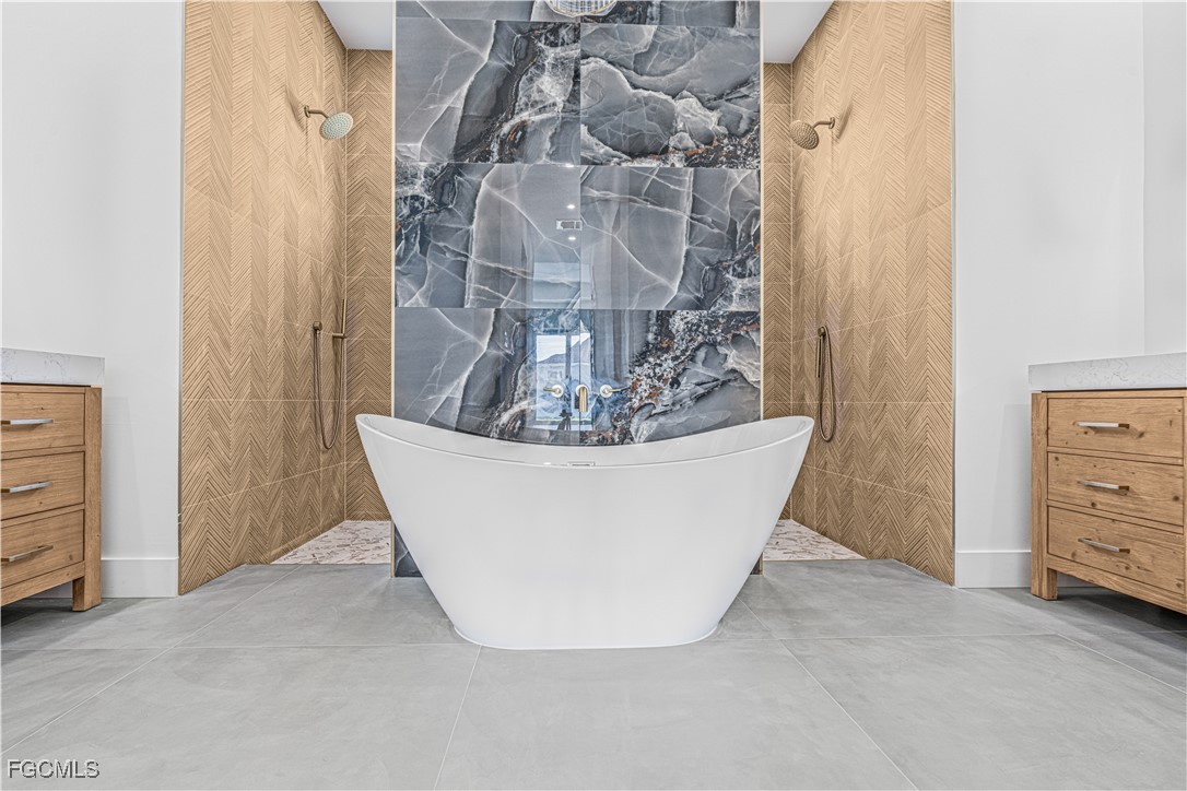 Inside, generous room proportions and tall walls create a refined sense of scale. Electrical outlets were strategically placed to allow mounted televisions with no visible wiring demonstrating the home’s attention to both luxury and functionality. The primary suite is a true retreat, featuring expansive his and hers closets, a spa inspired soaking tub, and a stunning shower accented by infinity mirrors for a hotel level experience.
