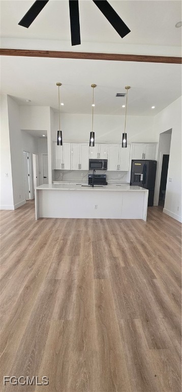 Stunning new-construction home featuring 4 bedrooms and 3 full bathrooms, designed with an elegant open-concept layout and high-end finishes. The property offers a spacious kitchen with a large center island, laminate flooring throughout, LED lighting, and a decorative fireplace that enhances the living area with a modern and sophisticated touch.