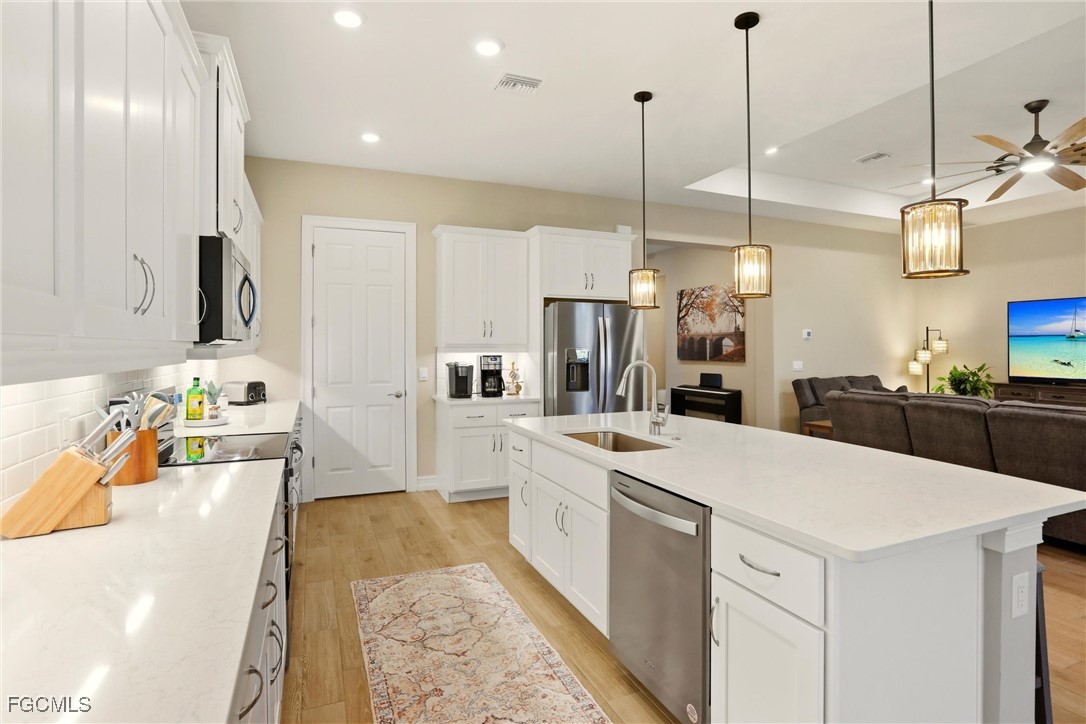 The community of Coral Bay is one of the newest and most desirable gated communities in North Ft Myers. It offers tons of amenities to it's residents such as a resort-style pool, splashpad, playground, exercise room, social room, tennis courts, Pickleball courts, bocce, and all sorts of social activities to help you meet your neighbors or make friends all while having one of the lowest HOA dues around. Also, the community has underground utilities and no flood insurance is required. Coral Bay is ideally located within minutes to Downtown Fort Myers, 2 major airports, a major highway, schools, restaurants, shops, parks, and all sorts of entertainment. This move-in-ready home delivers space, upgrades, and versatility all in one exceptional package so schedule your showing today!
