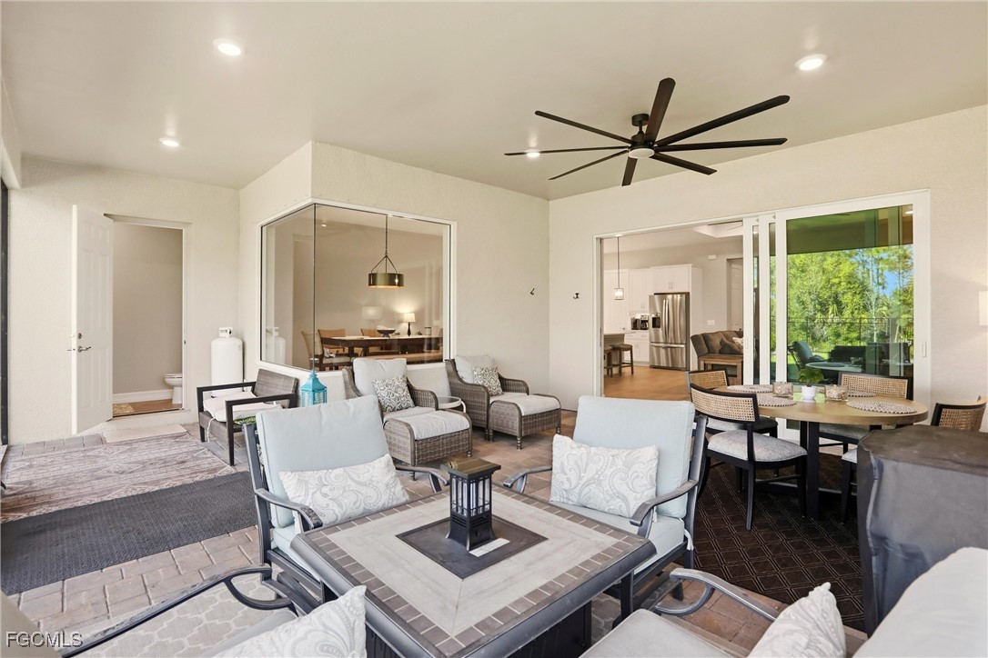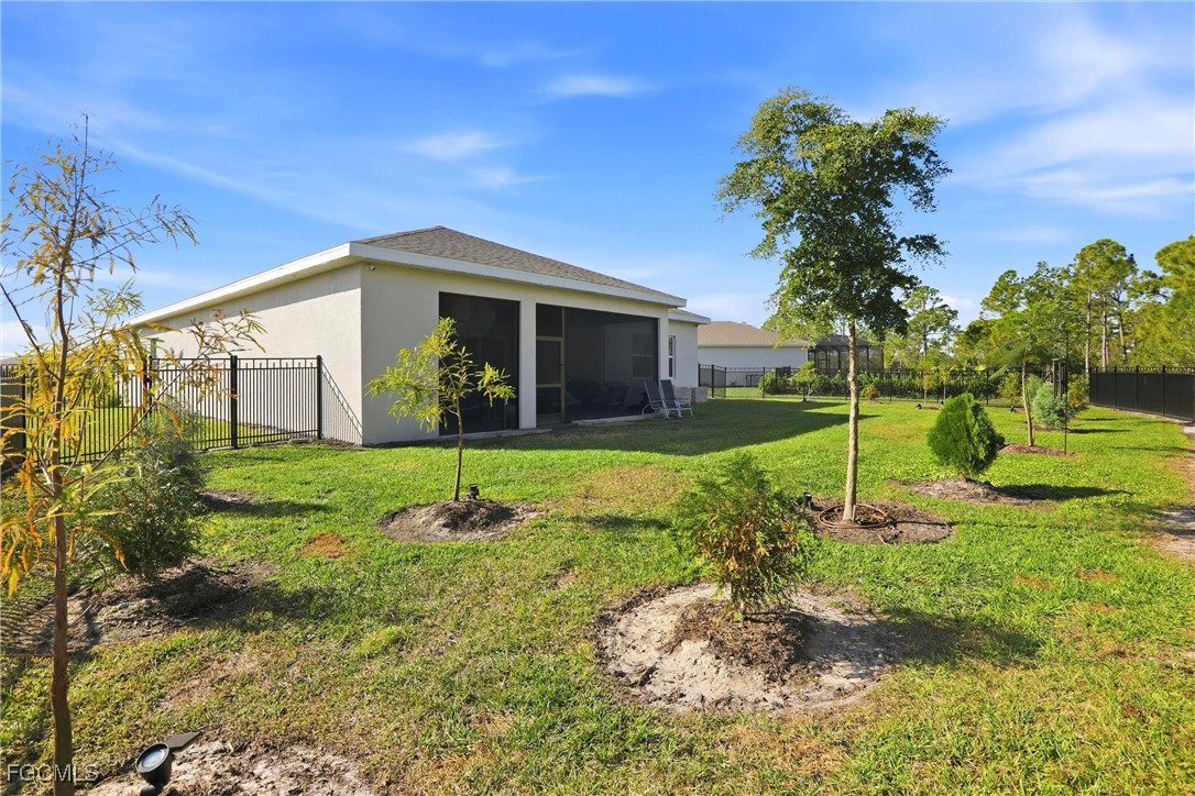 ....and then there’s the outside: the huge fenced backyard isn’t just a yard—it’s a future pool oasis waiting to happen. With one of the biggest yards in the community there's plenty of space to run, play, garden, sit by a fire pit, or build that enormous pool that will surely be the envy of your family, friends, and neighbors. Did I mention there's even a pool bath in the lanai area because future-you will appreciate not dripping water through the house. So why not spend your morning or evenings relaxing in your lanai with a drink as you look out into the vast preserve that provides tons of privacy?