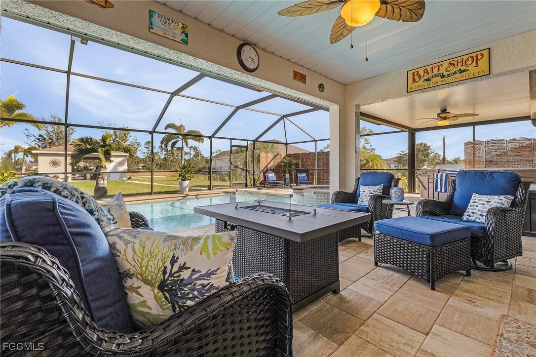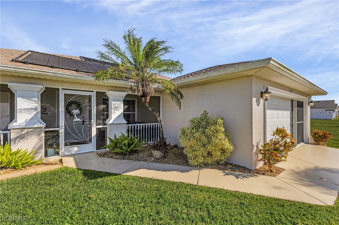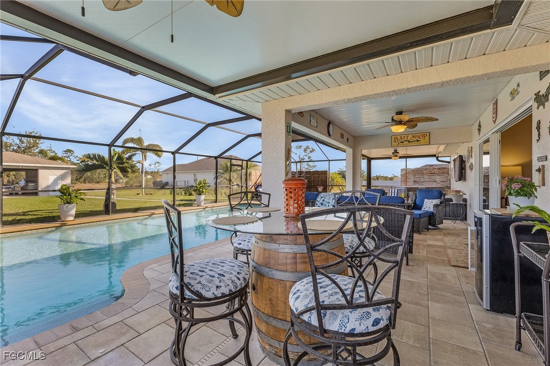 Welcome to this beautifully maintained 3 bed 2 bath pool home situated on 2 lots (nearly 1/2 acre of property). The lots are back-to-back, providing an extended yard space and including a detached garage with approximately 800 square feet of space (approximate dimensions 32x25). The garage has an oversize door in the front (approximately 190W x 106 H) that allows for the storage of boats, trailers, small RVs or the toys of your choice. The outside pool lanai area is stunning! It features a large solar heated pool (approximately 16x29) in a newly screened (no-see-um) lanai (2022) that includes both a large covered and uncovered space for enjoying the beautiful Florida weather! The pool pump was replaced in 2024and filter system was replaced in 2023. The kitchen was upgraded in 2024 and features granite countertops and stainless-steel appliances. The family room is spacious with cathedral ceilings and features an impact glass slider to access the pool lanai. All interior walls and trim were freshly painted in 2023. Exterior also painted in 2024. New roof 2022! Schedule a showing for this unique Cape Coral beauty today!