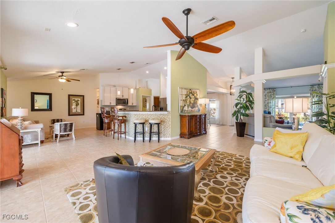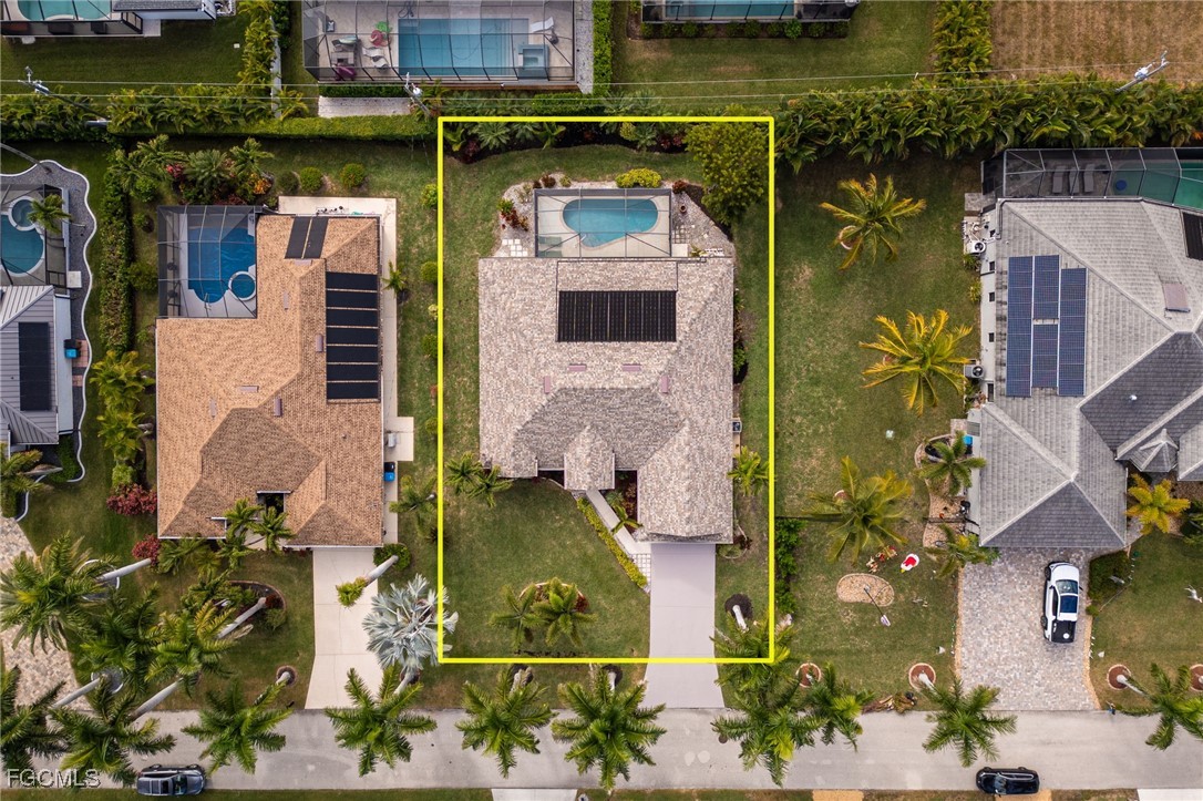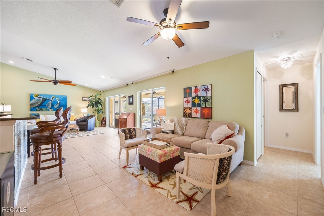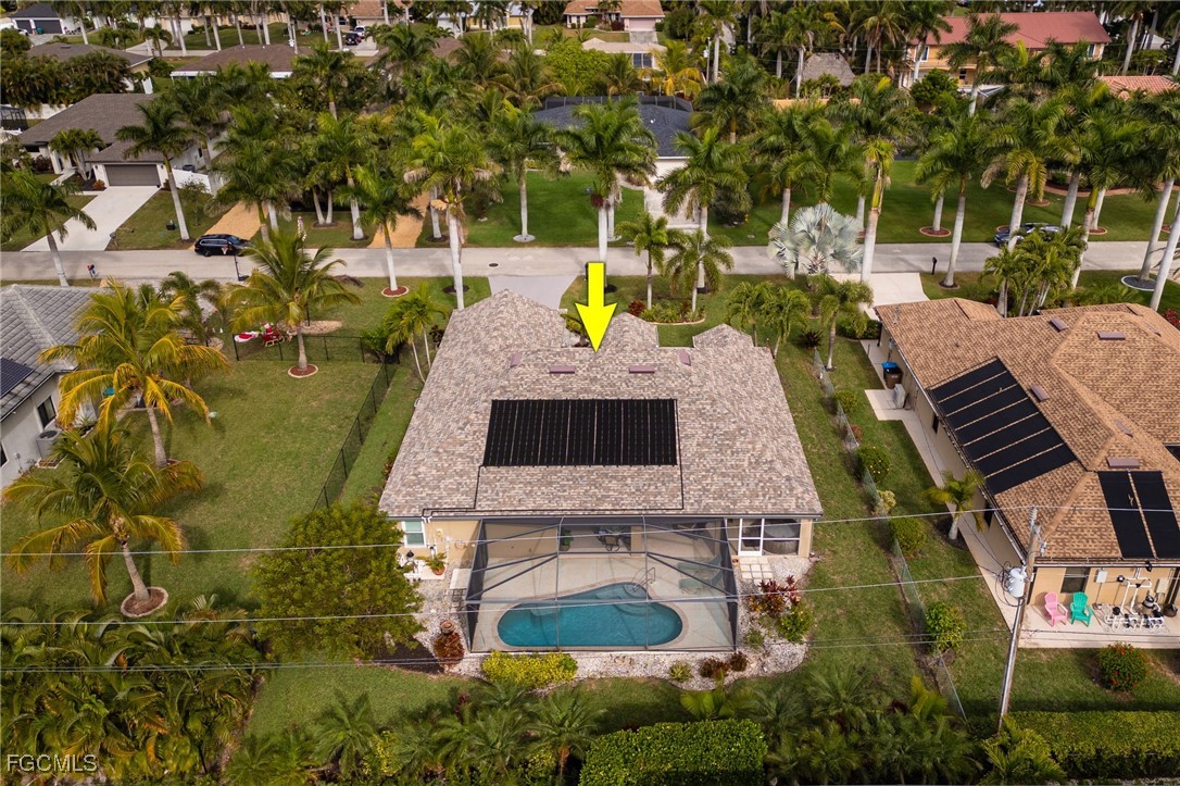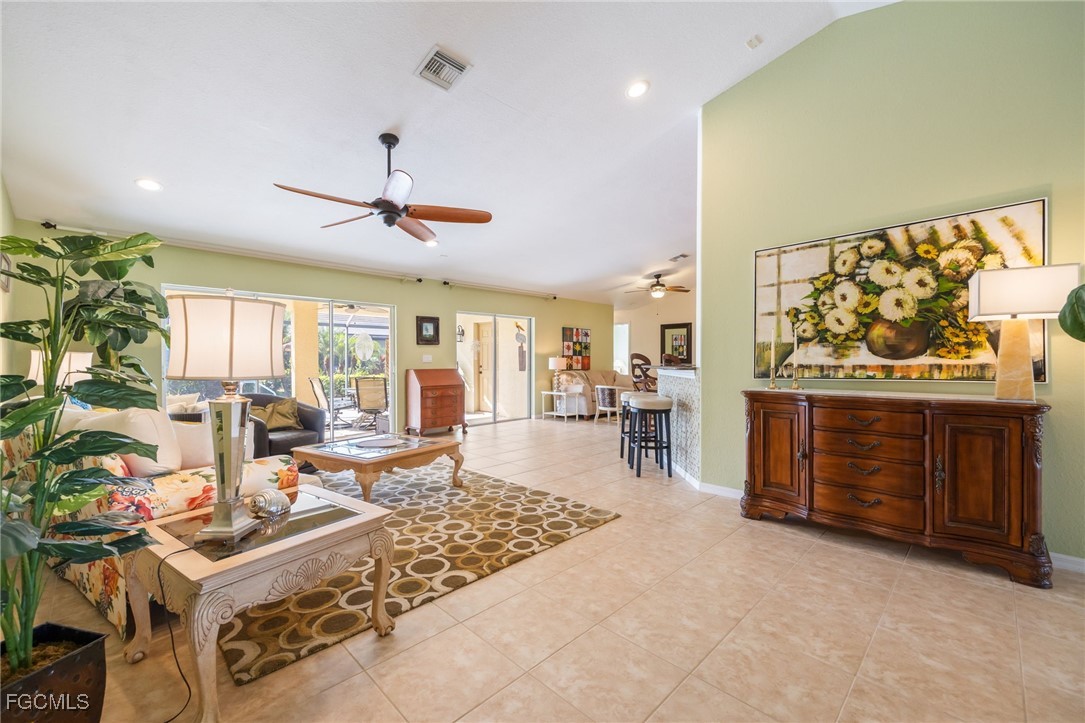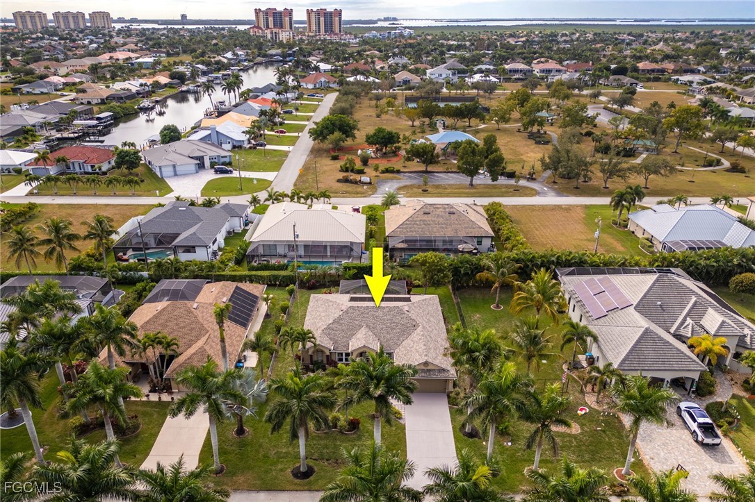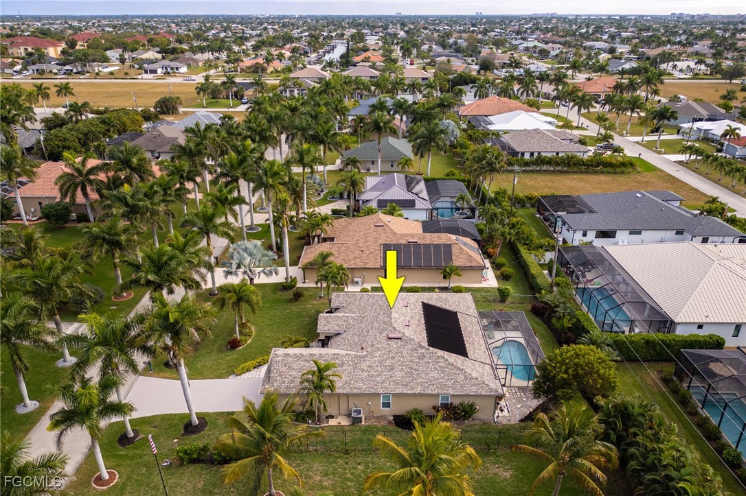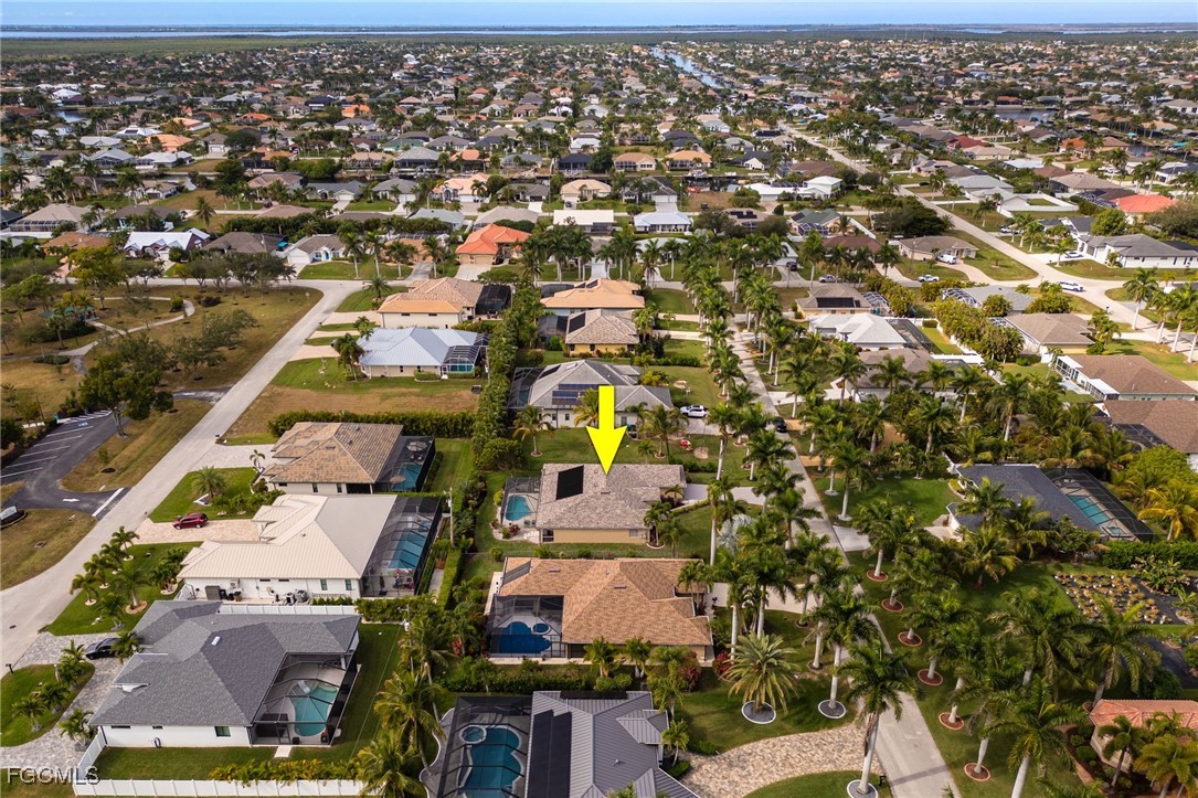 Lush, mature landscaping surrounds the home, enhancing both privacy and curb appeal. Located in one of Cape Coral’s most desirable neighborhoods—where streets are lined with swaying palm trees—you’ll be just minutes from waterfront dining, live music, Cape Harbour Marina, pickleball courts, parks, walking trails, and convenient shopping.