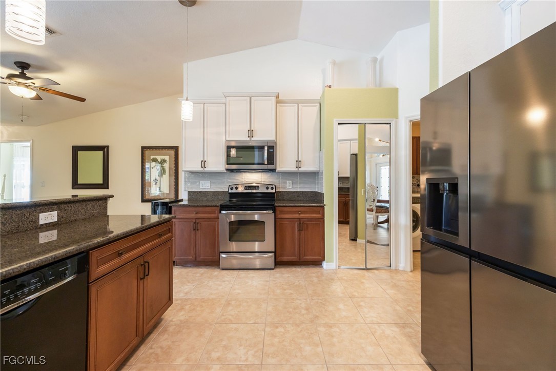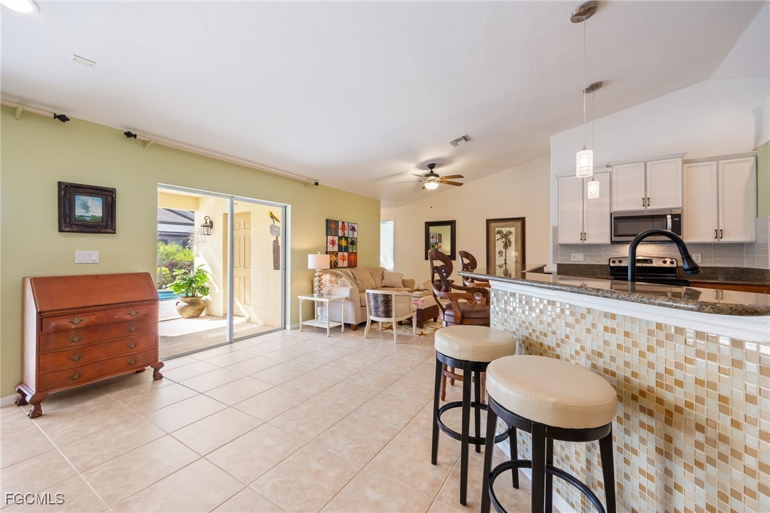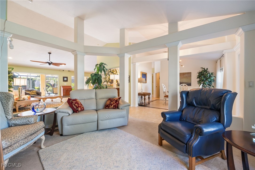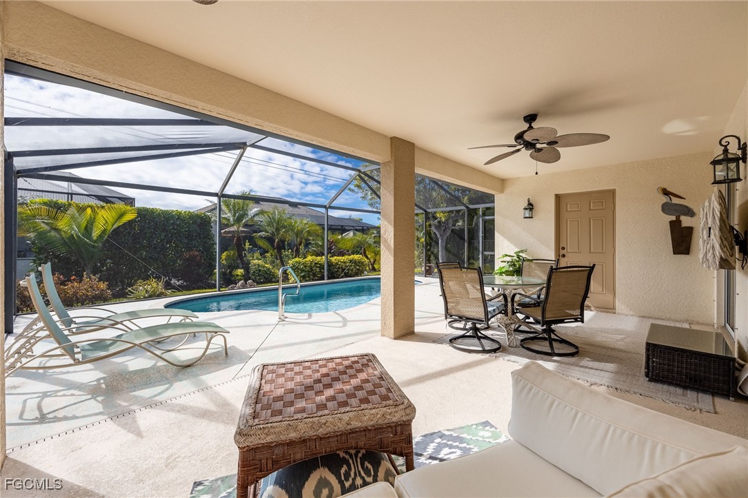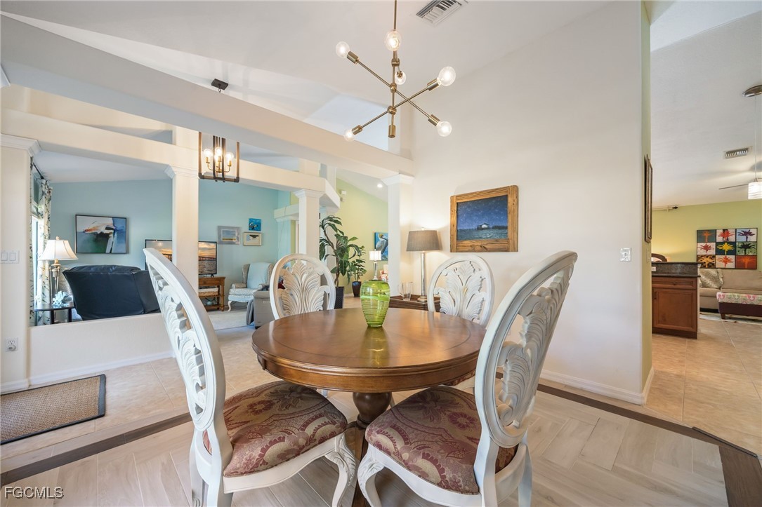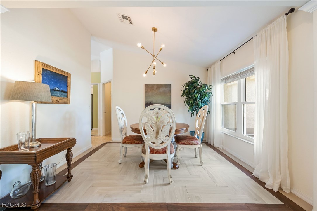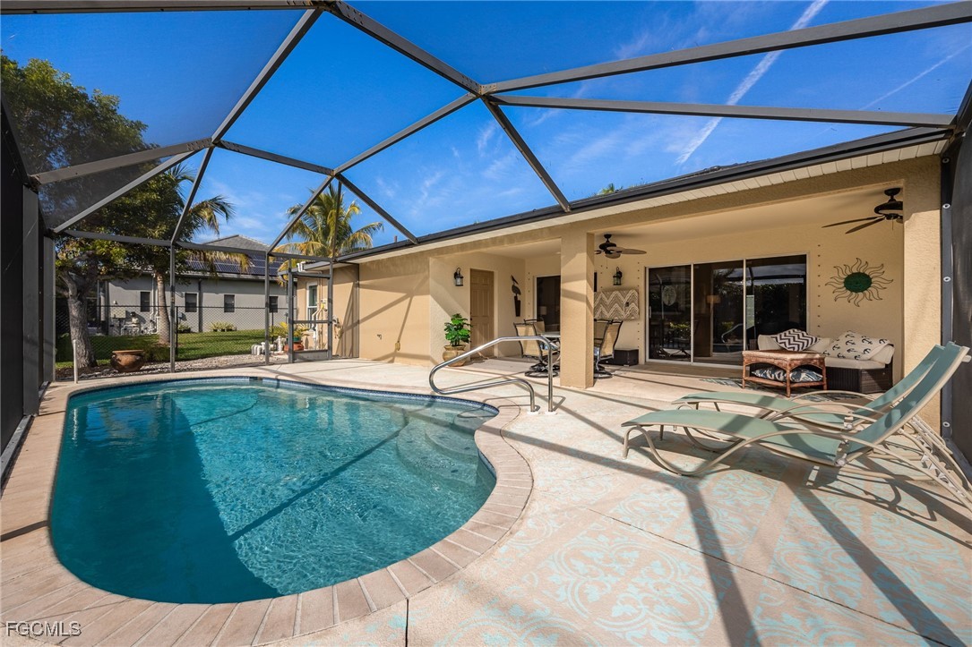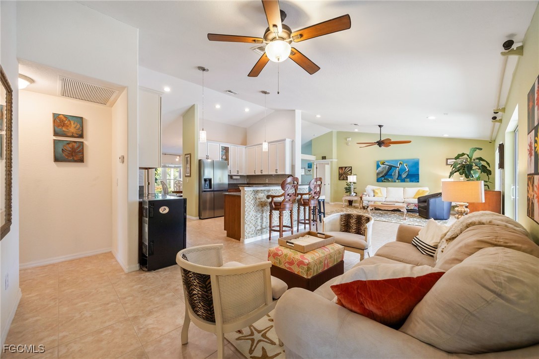 Lush, mature landscaping surrounds the home, enhancing both privacy and curb appeal. Located in one of Cape Coral’s most desirable neighborhoods—where streets are lined with swaying palm trees—you’ll be just minutes from waterfront dining, live music, Cape Harbour Marina, pickleball courts, parks, walking trails, and convenient shopping.