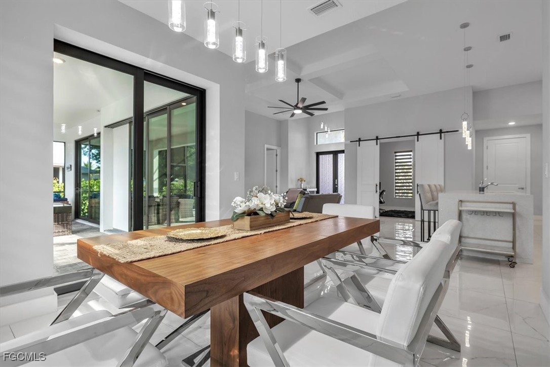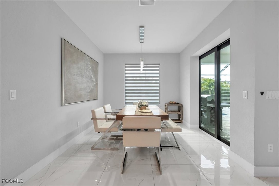 Discover this stunning new construction located in the heart of SW Cape Coral! This beautiful home features 3 bedrooms and 2 bathrooms and a den/office, showcasing an open floor plan that flows seamlessly throughout. With over 2,000sqft of living space and impressive 12 ft coffered ceilings, this property stands out. This property has been a short term rental doing over $60,000 in 2025, offered as Turnkey with the property management and future bookings set to transfer over to new owner or can easily be canceled if you are looking to be a full time resident. The master suite offers a luxurious retreat, complete with his and her walk in closets, a 9.4 ft ceiling, and a private sliding door that leads directly to the pool. The spacious master bath is designed for relaxation, featuring a walk-in shower, a standalone tub, and double vanity sinks. The open kitchen invites you to entertain, flowing effortlessly into the dining and gathering areas and equipped with all stainless steel appliances. Centrally located, this home is just minutes away from shopping, dining, and Cape Harbour perfect for your convenience! All hurricane windows, sliders, and doors. Don’t miss your chance to make this beautiful home your own!