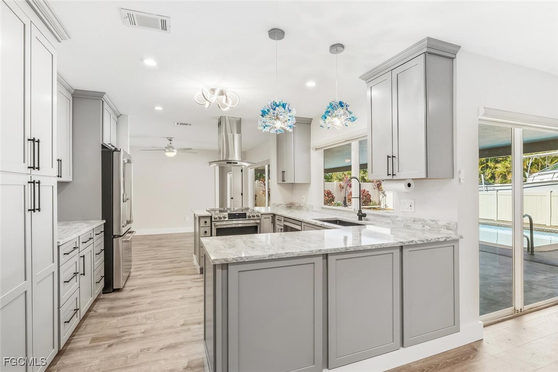This beautifully upgraded and updated POOL HOME is located in the highly desirable community of HERITAGE FARMS where LARGE, SPACIOUS HOMESITES offer lots of privacy and NO FEES! Truly a MUST SEE this FULLY REMODELED home is MOVE-IN READY! Situated on a BIG CORNER LOT with just under an acre of land, this 3-bedroom, 2 bath, 2 car garage home includes an additional long, paved driveway that's great for STORING YOUR RV AND/OR BOAT! Enjoy the sparkling pool with a huge lanai area and pass-through window from the brand-new kitchen! IMPACT WINDOWS AND DOORS provide peace of mind and PLANTATION SHUTTERS throughout the home add a nice touch! The guest bath is accessible from the pool for convenience, as well. ENERGY SAVING SOLAR PANELS were added which lowers your electric costs substantially! A NEW ROOF was installed in 2022. TWO NEW A/C UNITS WERE INSTALLED IN 2023 for maximum comfort! The KITCHEN IS STUNNING with wood cabinetry, quartz countertops, and all new stainless-steel appliances. You'll find Luxury Vinyl Flooring throughout the main living areas with tile in the bathrooms and laundry room. Modern lighting and all new ceiling fans bring this home up to today's standards and desirable decor. The WHOLE-HOUSE GENERAC GENERATOR with topped off propane tank is an added bonus. The home also offers a whole-house reverse osmosis water system and whole-house surge protector. The spacious primary suite has a custom designed built-in closet system and strikingly beautiful primary bathroom with fine finishes. POOL ACCESS from the primary suite, living/dining area, and family room invites you outdoors to enjoy the large pool with a privacy fence and plenty of space for entertaining! This fully remodeled home is a "MUST SEE" and is "MOVE-IN READY!" Located in South Ft. Myers near shopping, dining, entertainment, sports complexes and the GORGEOUS BEACHES OF SOUTHWEST FLORIDA, INCLUDING FT. MYERS BEACH, SANIBEL AND CAPTIVA ISLANDS, FOR THE ULTIMATE FLORIDA LIFESTYLE! Come take a look!