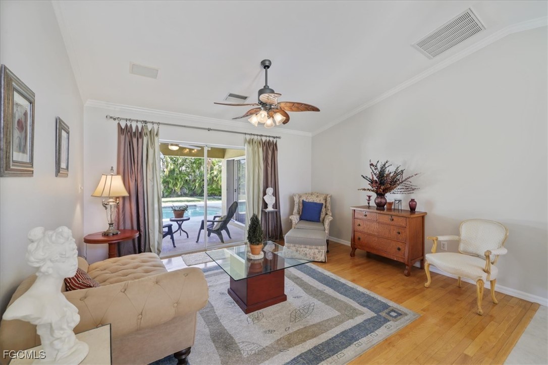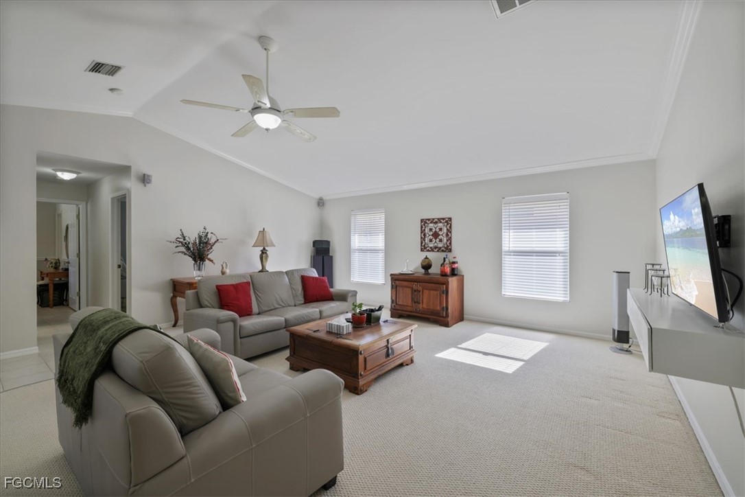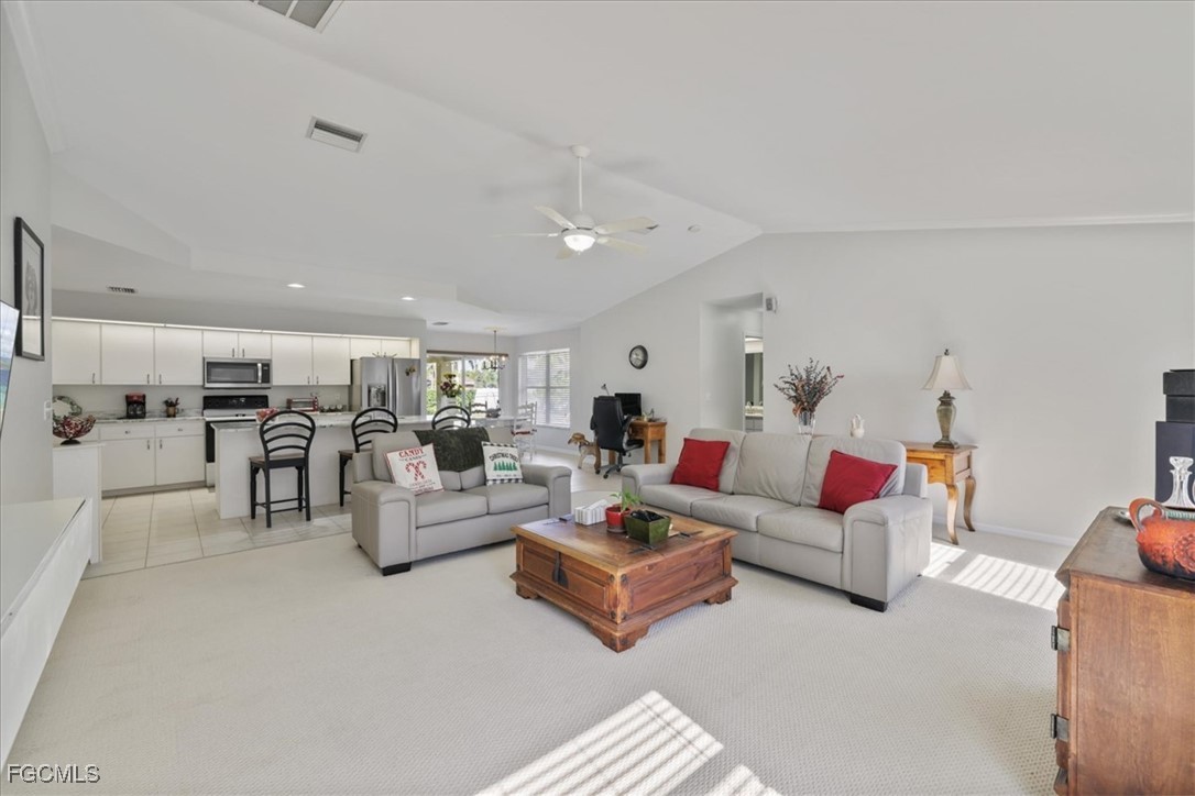 Multiple living spaces, including a family room and den/study, offer versatility for work, relaxation, or hosting guests. Tile and carpet flooring add comfort, while the overall layout supports a relaxed Florida lifestyle.