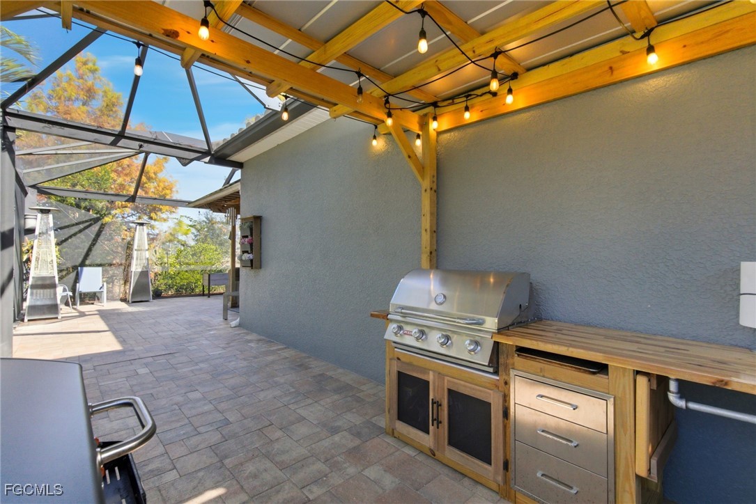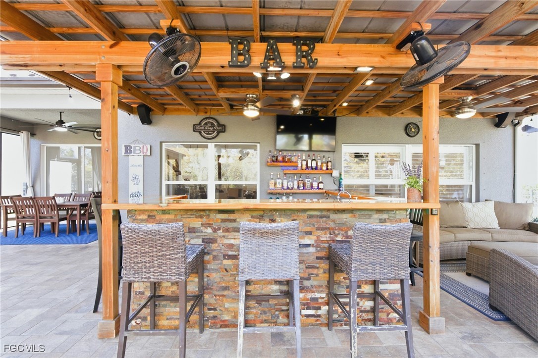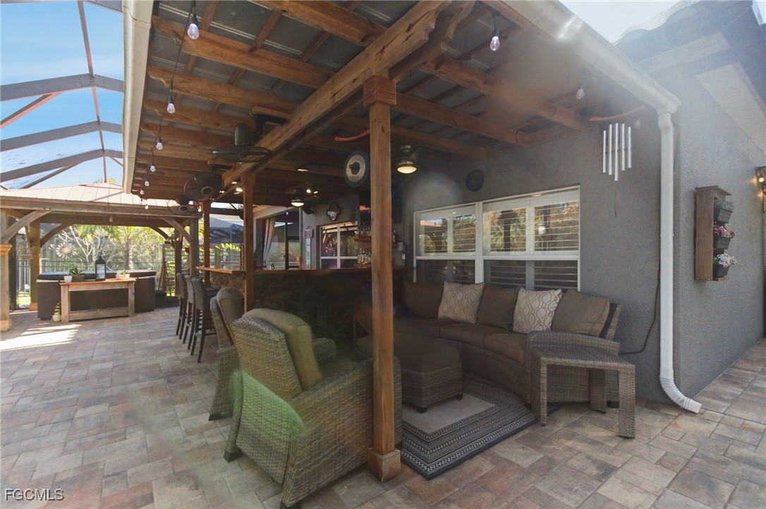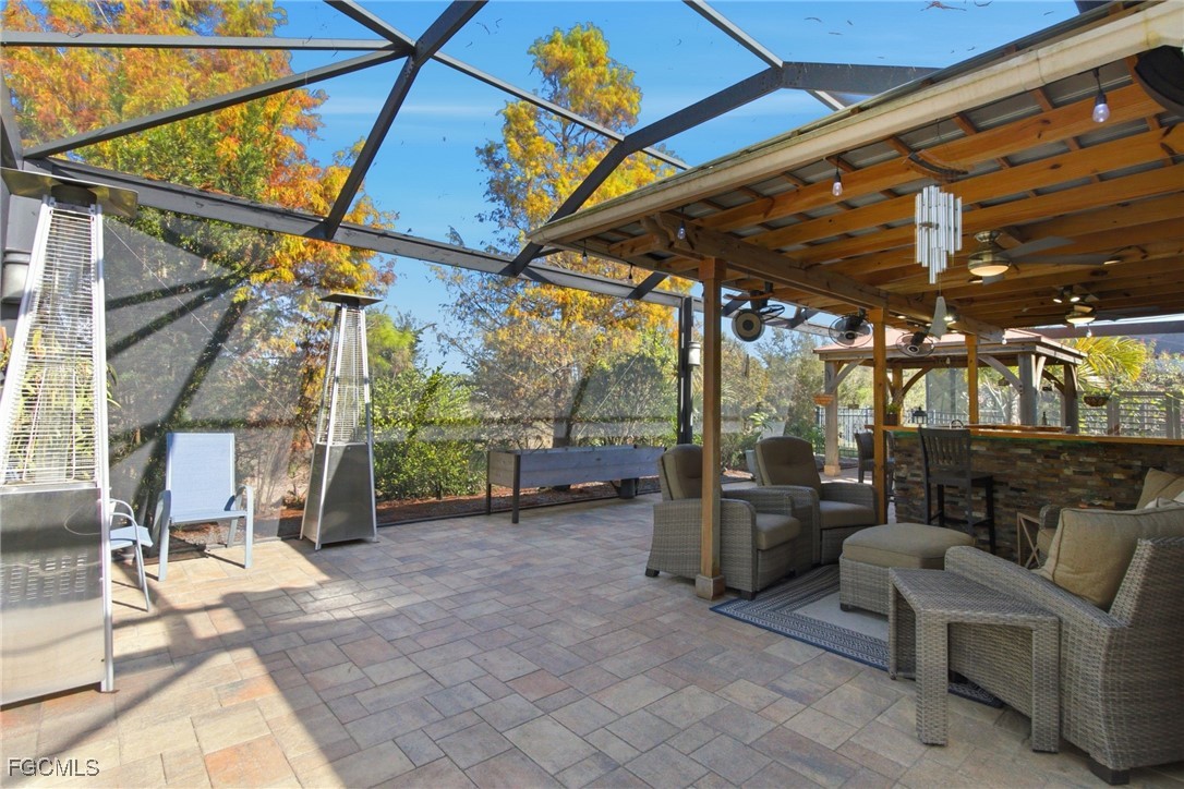 Upgraded and designed for everyday comfort and entertaining, this beautifully maintained home in the highly desirable Magnolia Lakes of Gateway offers standout indoor-outdoor living and true move-in readiness. The open-concept kitchen features granite countertops, rich dark wood cabinetry, and stainless steel appliances, flowing into a spacious living area ideal for gatherings or quiet nights at home. Alexa-Controlled lights in Living and Dining Rooms. Commercial-grade AC5 LifeProof flooring provides water- and scratch-resistant durability throughout, complemented by a fresh interior repaint with Sherwin-Williams Diamond. Major improvements include Hybrid Energy Efficient AO Smith Water Heater, Roof (2019), Spa (2018), A/C (2021) and Fence (2014), reflecting pride of ownership. The primary suite offers a relaxing retreat with a separate soaking tub, walk-in shower, and ample granite counter space. Outdoors, enjoy a private backyard oasis with a screened lanai featuring Bose speakers, a custom pergola, and a six-person hot tub, plus a custom outdoor bar with LED lighting, an epoxy river live edge bar top and separate built-in grill area with butcher block countertop, and mature fruit trees including dragon fruit, pineapple, lime, lemon, and calamondin. A hurricane-rated lanai cage designed to withstand winds up to 129 mph with picture-window screens adds peace of mind and unobstructed views.
