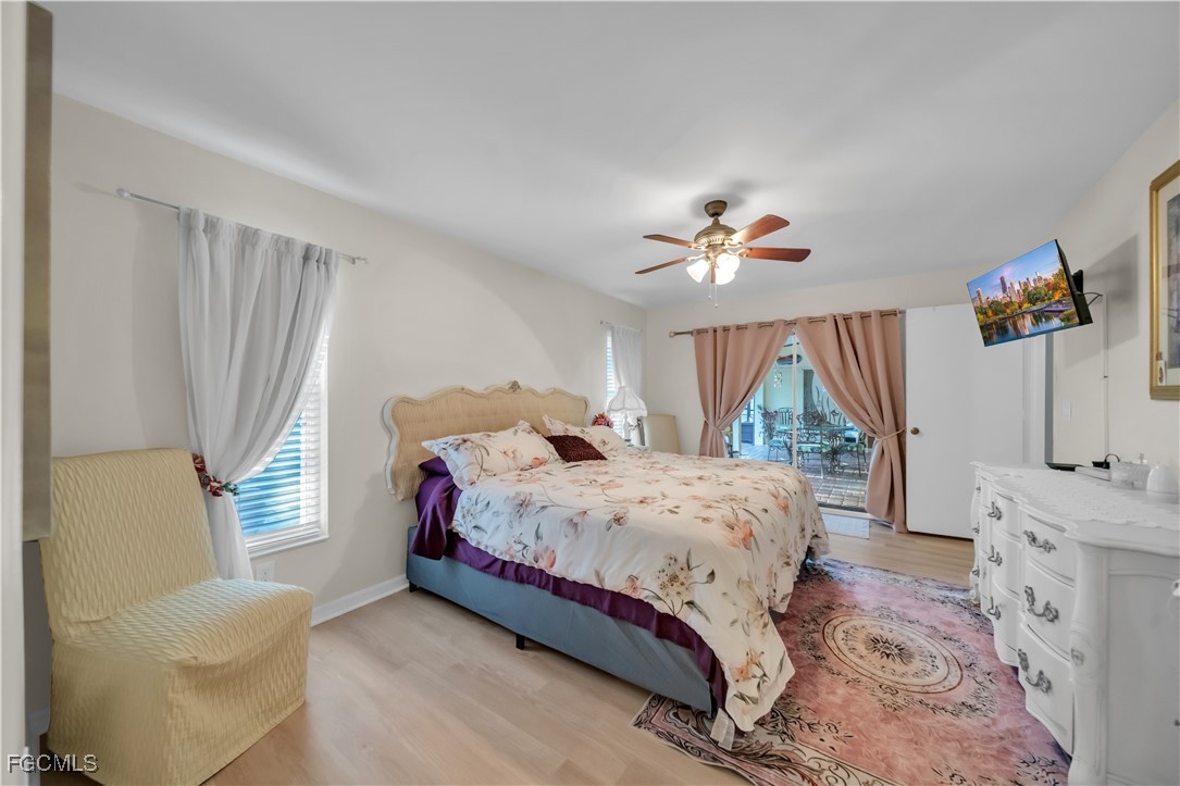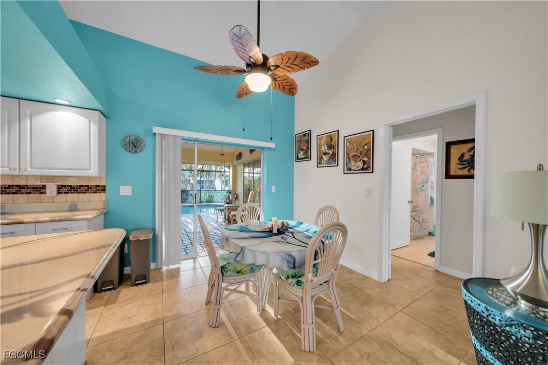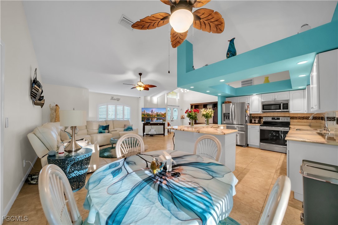 Additional exterior features include accordion-style hurricane shutters throughout, a fenced yard, and well-maintained landscaping that enhances curb appeal. Inside, the home offers an open living and dining area with natural flow into the kitchen providing ample counter space and stainless steel appliances. The home features a functional split-bedroom layout, with the primary bedroom and one additional bedroom offering sliding glass door access to the lanai. The primary suite is privately located on the opposite side of the home and includes a double-vanity and practical layout. Conveniently located near Cape Harbour Marina, waterfront dining, shopping, and local amenities. With its desirable location and major upgrades already completed, this SW Cape Coral home is ready for its next owner to step in and make it their own. Don't miss this opportunity!