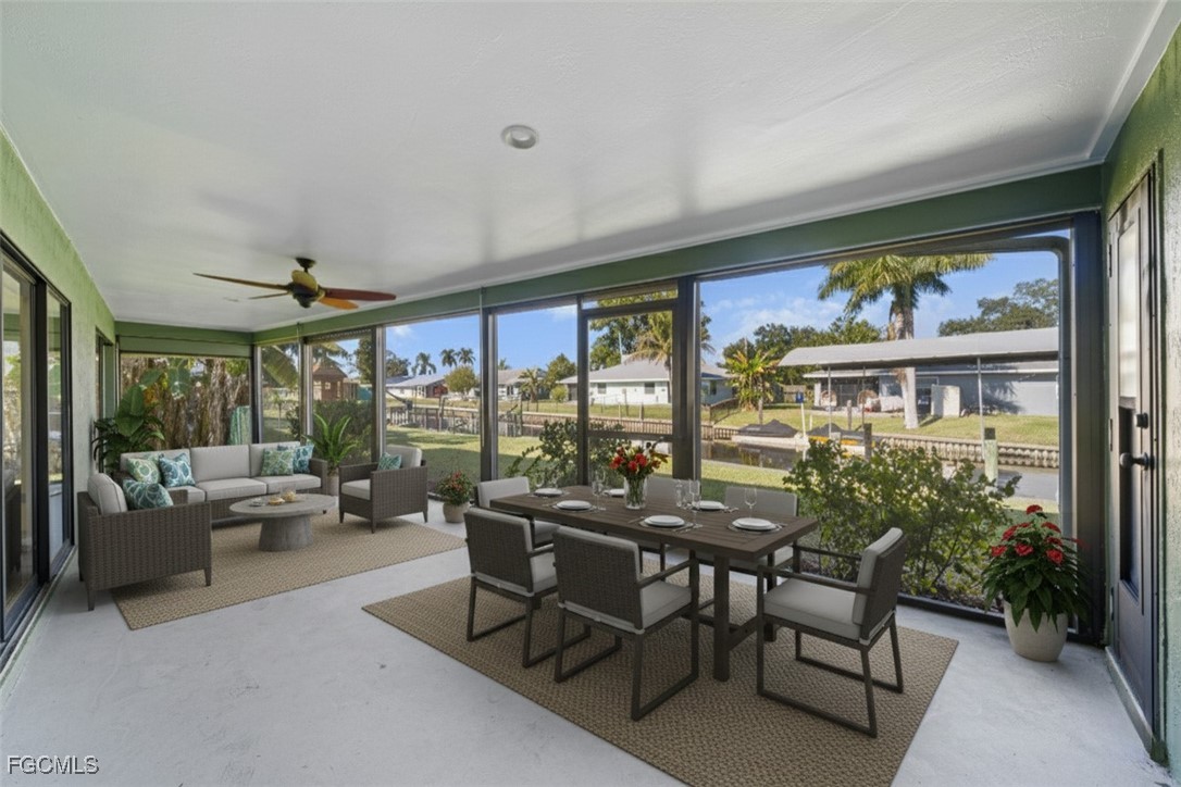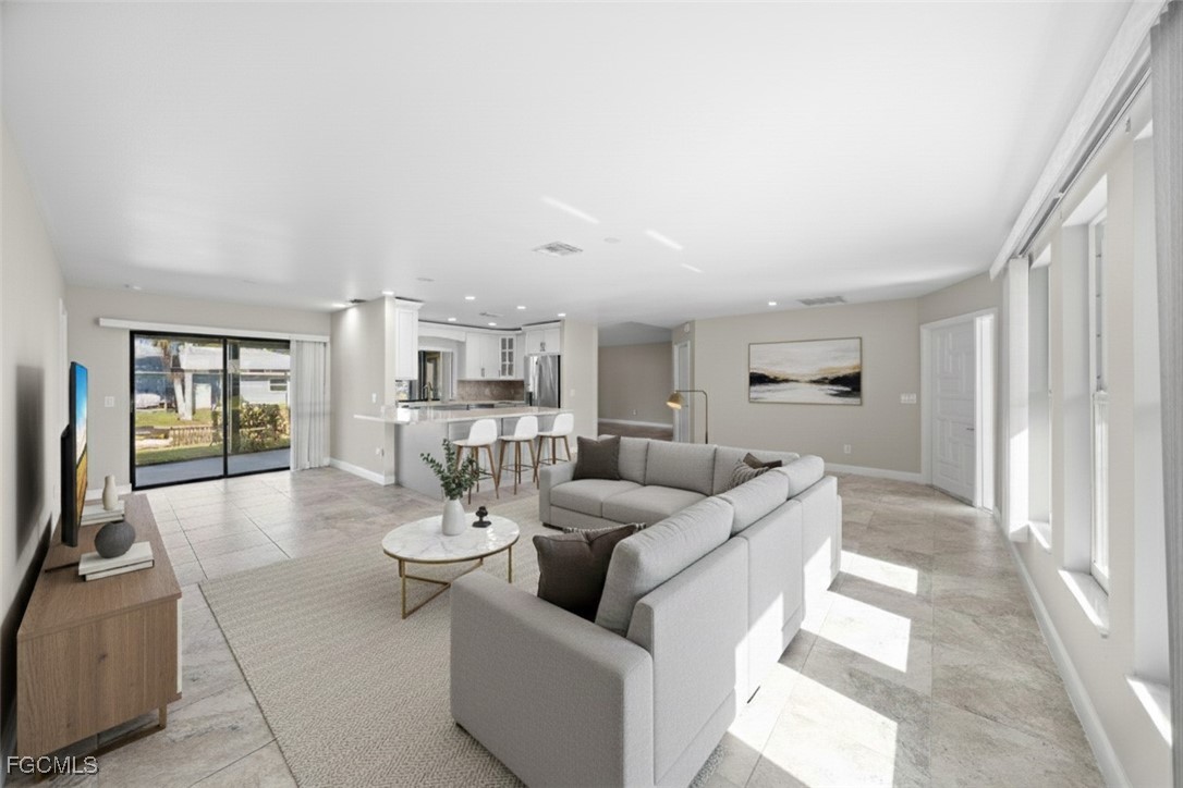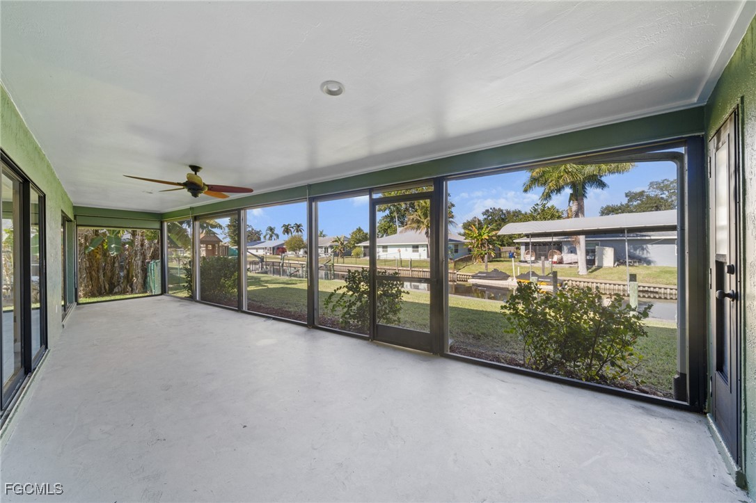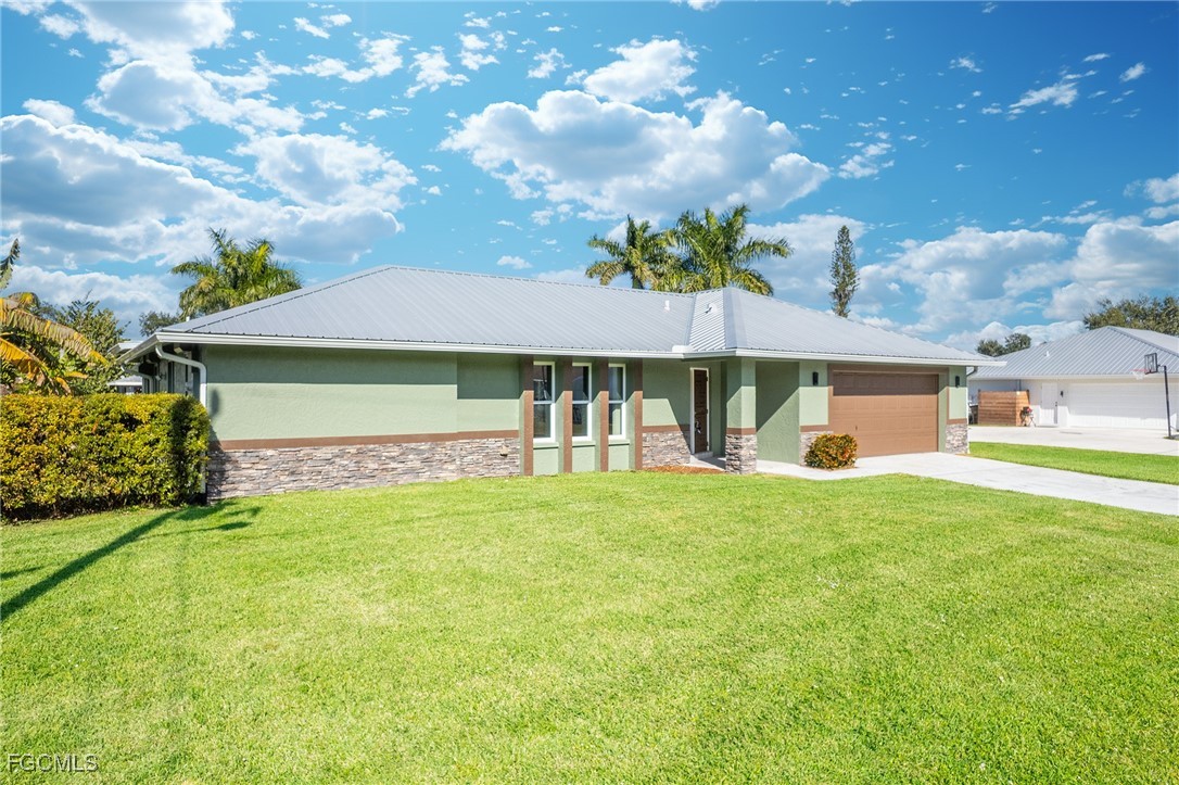 Recent upgrades and improvements include tile flooring throughout, a remodeled kitchen with updated appliances, fresh exterior paint, a new water heater Dec 2025, and a metal roof completed in 2022. The screened porch was fully rebuilt and upgraded in 2025. A new well & fully automated sprinkler system installed 2024, while the home remains connected to city water for convenience. The electrical panel and breakers were replaced in 2022, and roll down shutters protect the lanai and most windows. In 2006, the entire seawall and cap were replaced and raised by approximately 12 inches. Interior updates include new cabinetry, countertops, vanities, toilets, sinks, faucets, interior doors, trim, tile flooring throughout, and updated plumbing lines. Finished floor elevation measures approximately 7.5 feet. Buy with confidence knowing this home features a raised seawall, metal roof, storm protection, extensive renovations, and FAST BOATING ACCESS especially for the price point! BOATERS SECRET - unique location. Travel West and reach the Gulf for world-class fishing, boating, and beaches. Travel East through the locks to access the East Coast, then continue to the Florida Keys, the Bahamas, and beyond.
