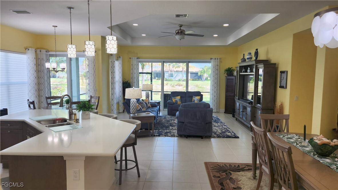 Welcome Home! This beautiful property at 28563 Twain Drive in the stunning Valencia Bonita 55+ active adult community. Built in 2021 by GL Homes, the Chandon model offers 4 bedrooms and 3 full baths providing 2,464 square feet of living space under air. As you enter the home through the spacious foyer, you will find a colorful world of comfort and elegance with upgraded lighting throughout. A large gourmet kitchen with quartz countertops, cabinet lighting, wine cooler, breakfast bar and dining area. The great room and formal dining room provide great opportunities for entertaining guests or just relaxing. The spacious screened lanai offers tranquil lake views. The primary suite with en-suite has tray ceilings, three large windows with lake views, walk-in closets, custom cabinets, oversized shower and dual vanities. The second bedroom provides it's own en-suite carefully designed for guests. Bedrooms 3 and 4 are versatile enough to use as office or den. The two-car garage has epoxy flooring, storage racks and pull down attic access with an additional 338 sq. ft. of storage. A tankless water heater ensures hot water on-demand. Custom window treatments, Hunter Douglas pull down shades, ceiling fans throughout the home, closet storage racks, whole house purification system, frosted bath windows, Vitex security system and whole house surge protection complete this wonderful home. Imagine your new lifestyle. To enhance your new lifestyle, Valencia Bonita offers the following community amenities. A 45,000 SF clubhouse and lifestyle complex with a fitness center, grand ballroom, billiards, card rooms, cooking and art studios, and a cafe offering breakfast, lunch and dinner. A full spa will keep you pampered with massages and other aesthetic treatments. Outdoor amenities include pools, outdoor bar, tennis and pickleball courts, and two dog parks