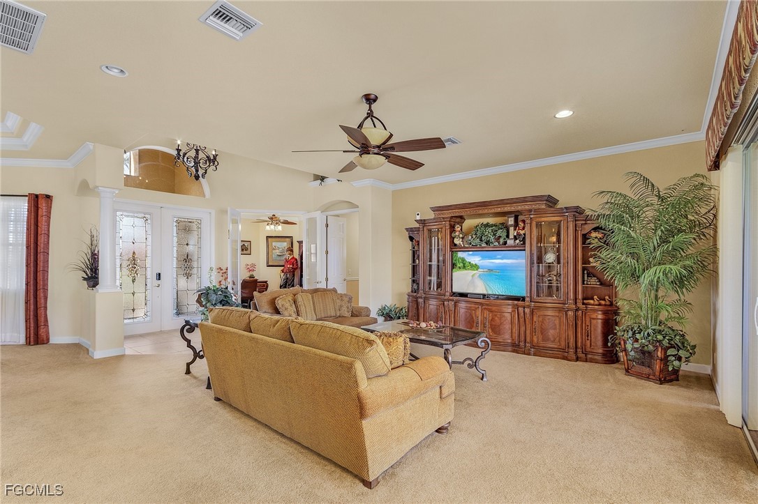 Welcome to this warm and inviting home nestled on a cul-de-sac in the desirable Cape Royal Golf Community. This is where comfort, space, and opportunity truly come together. Offering 2,624 square feet, this 3-bedroom, 3-bathroom residence with a den and 3-car garage is thoughtfully designed for both everyday living and entertaining. Enjoy peace of mind with a new A/C (2024) and new hot water heater (2026), along with a durable tile roof. The home opens to bright, open living spaces that flow seamlessly to the screened lanai, where tranquil golf course views create the perfect backdrop for morning coffee or evening relaxation. With ample outdoor space, there’s plenty of room to add your own pool and hot tub, allowing you to customize your private retreat just the way you envision. The versatile den offers flexibility for a home office, hobby room, or guest space.