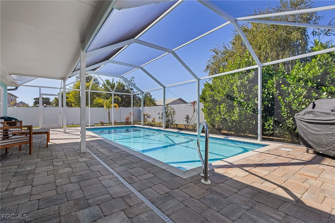 Welcome!! Absolutely Charming 3 Bedroom + Den/ 2 Bath, Heated- Saltwater Pool Home in SW Cape Coral!!! As you step into the foyer of this unique floorplan with over 2000 sq. ft. of living area, the den (great space for an office, craft, playroom or another room for guests) is centered between two nicely appointed guest bedrooms & guest bath with tub/shower combo. Spacious kitchen, large island w/ breakfast counter, stainless appliances, pantry & separate dining room. The great room has sliding doors that open up to the screened lanai & pool, perfect for entertaining & outdoor living. The large owner's suite has a walk-in closet, soaking tub, separate shower and double sink vanity. Inside laundry room includes a washer and dryer. Rock boat parking pad. A/C 2024-Pool was completed in 2022. Not In A Flood Zone!! Conveniently Located near Great Restaurants, Entertainment, Shopping, Schools and Medical Services. Own Your Piece of Paradise, Schedule A Showing Today!!